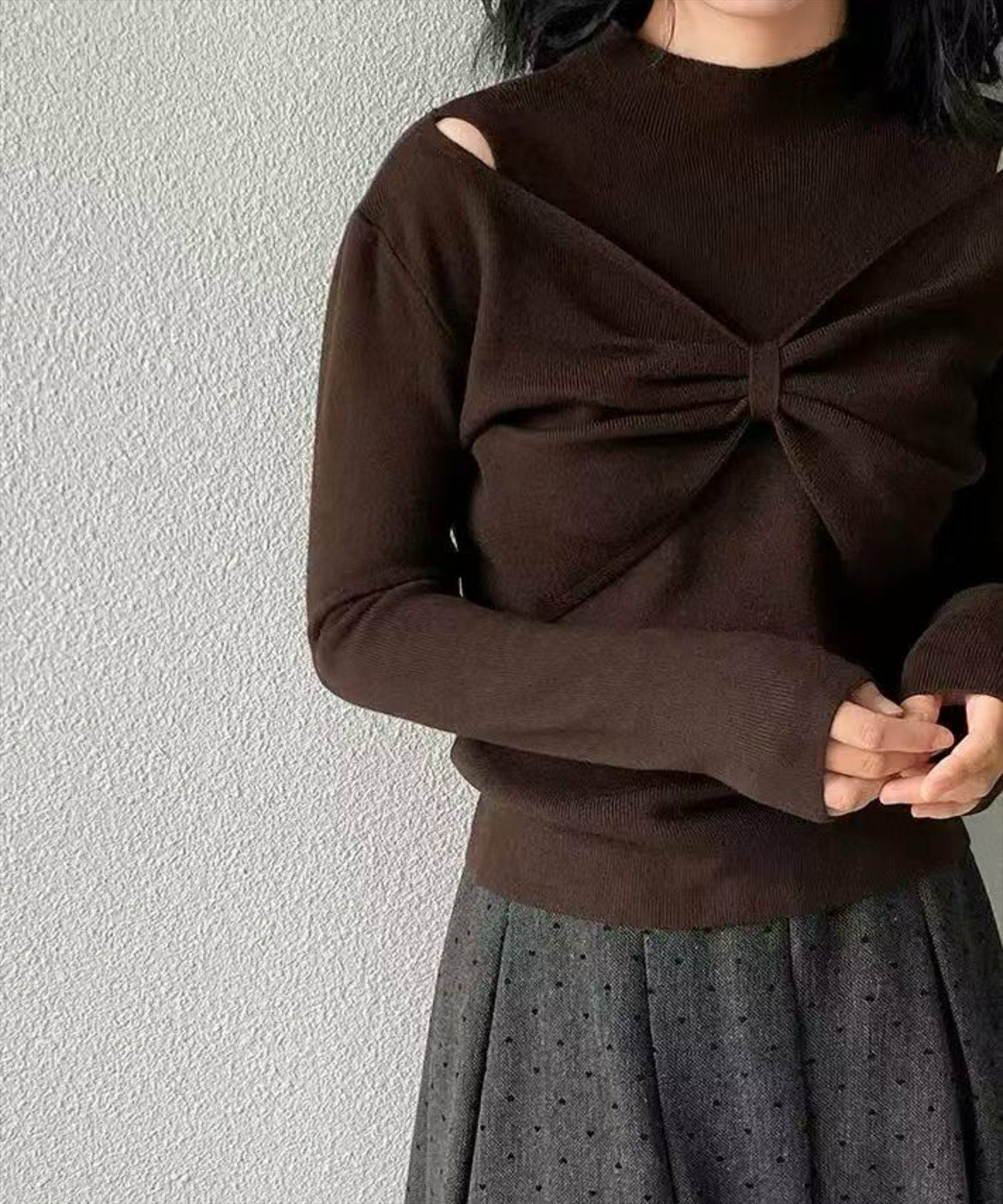 STAY MOTION≪WEB限定/AW新作≫フロントリボンハイネックニットトップス[ST1090]