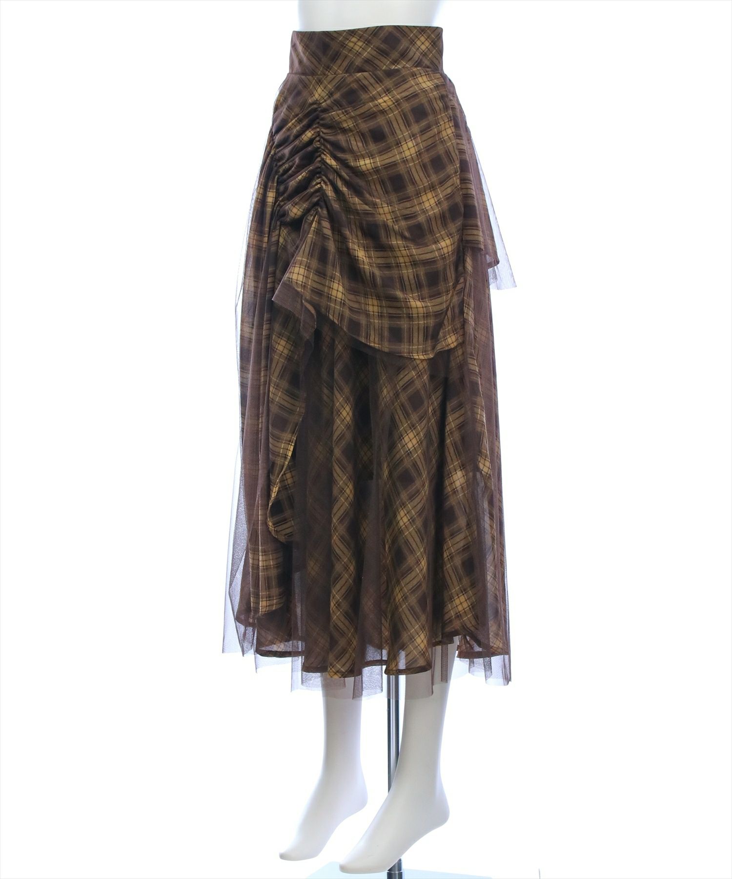 STAY MOTION≪WEB限定/AW新作≫アシンメトリーフリルチェック柄ロングスカート[ST1056]