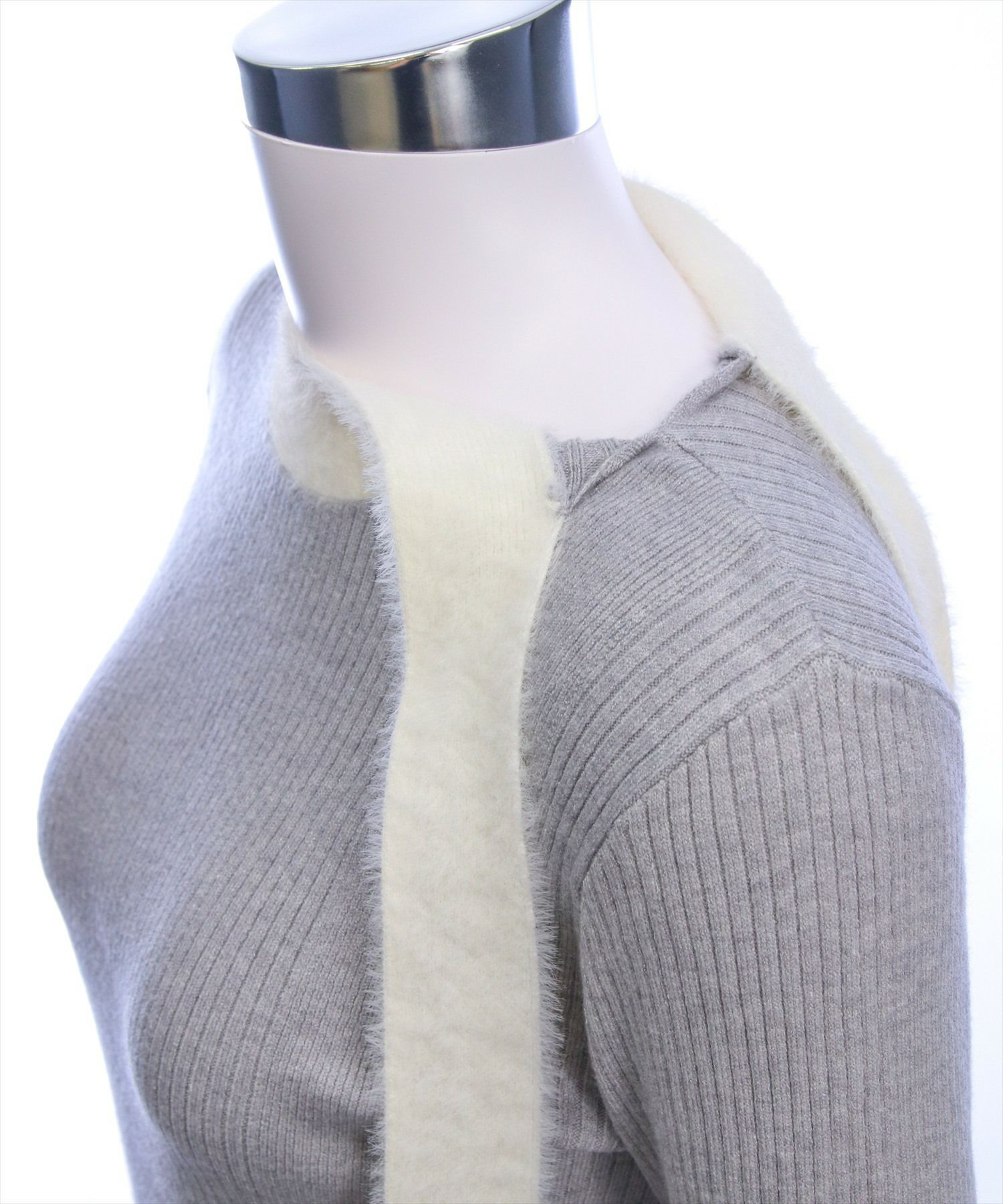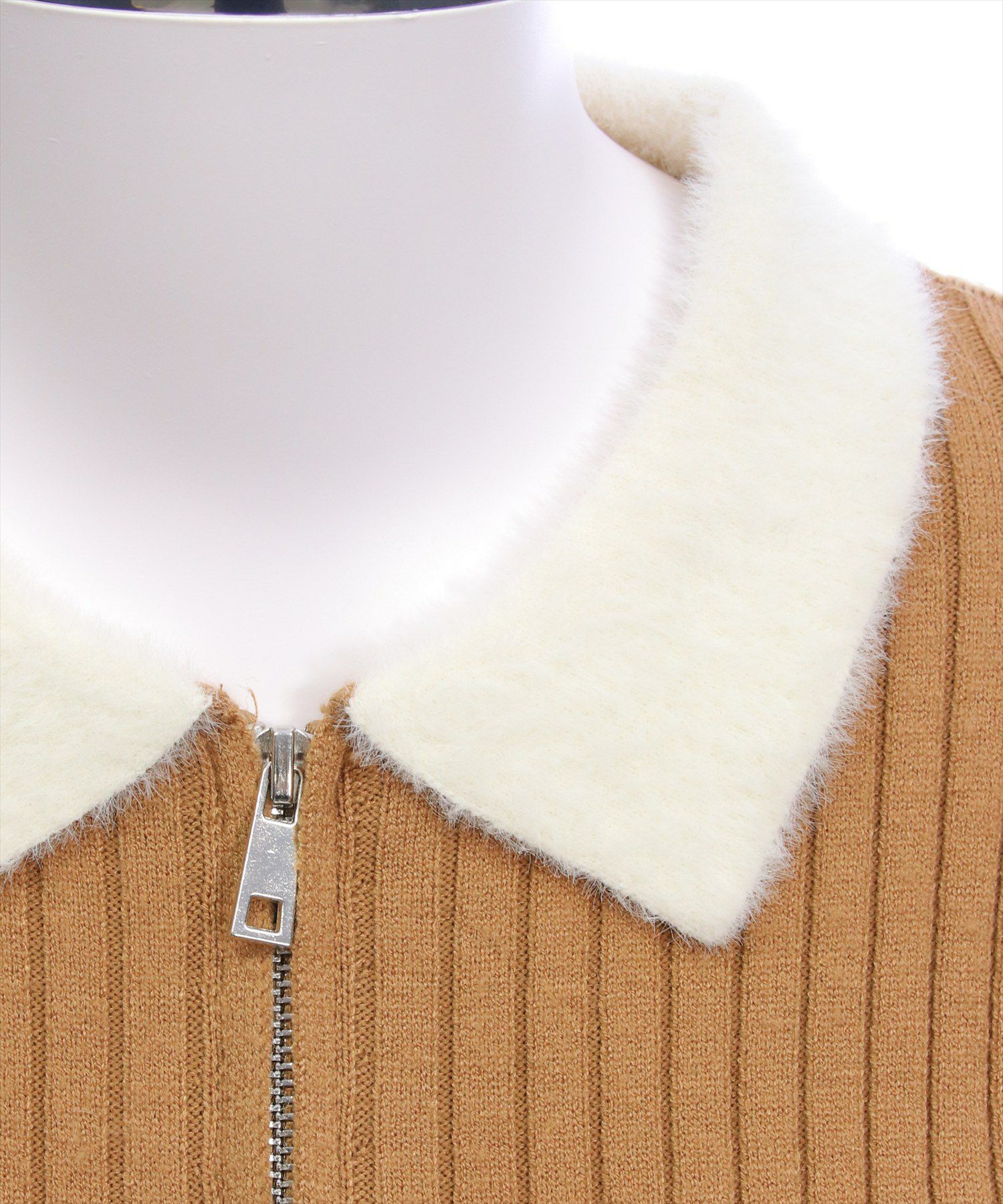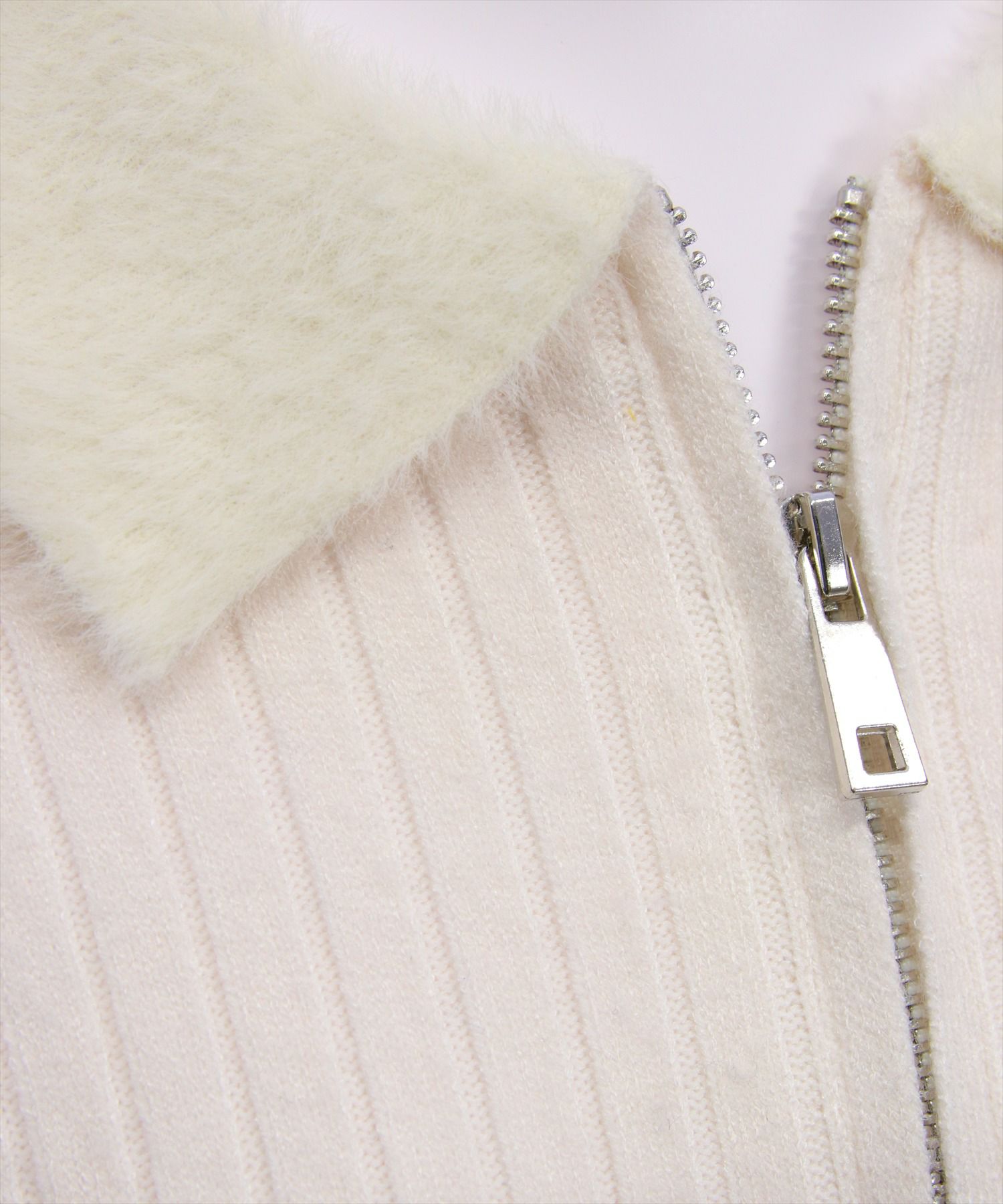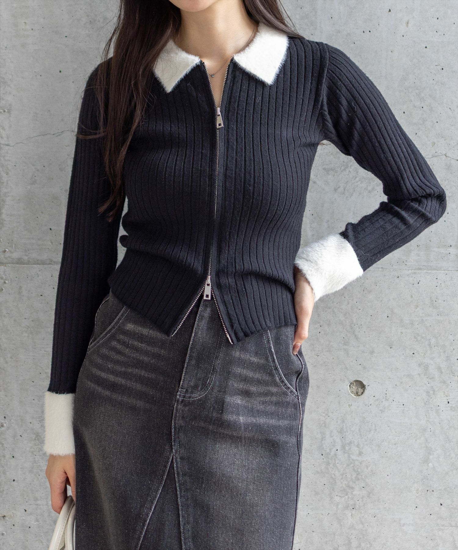 clear≪AW新作/新色追加≫襟袖ショートフェザーダブルジップリブニットトップス[CL9321]