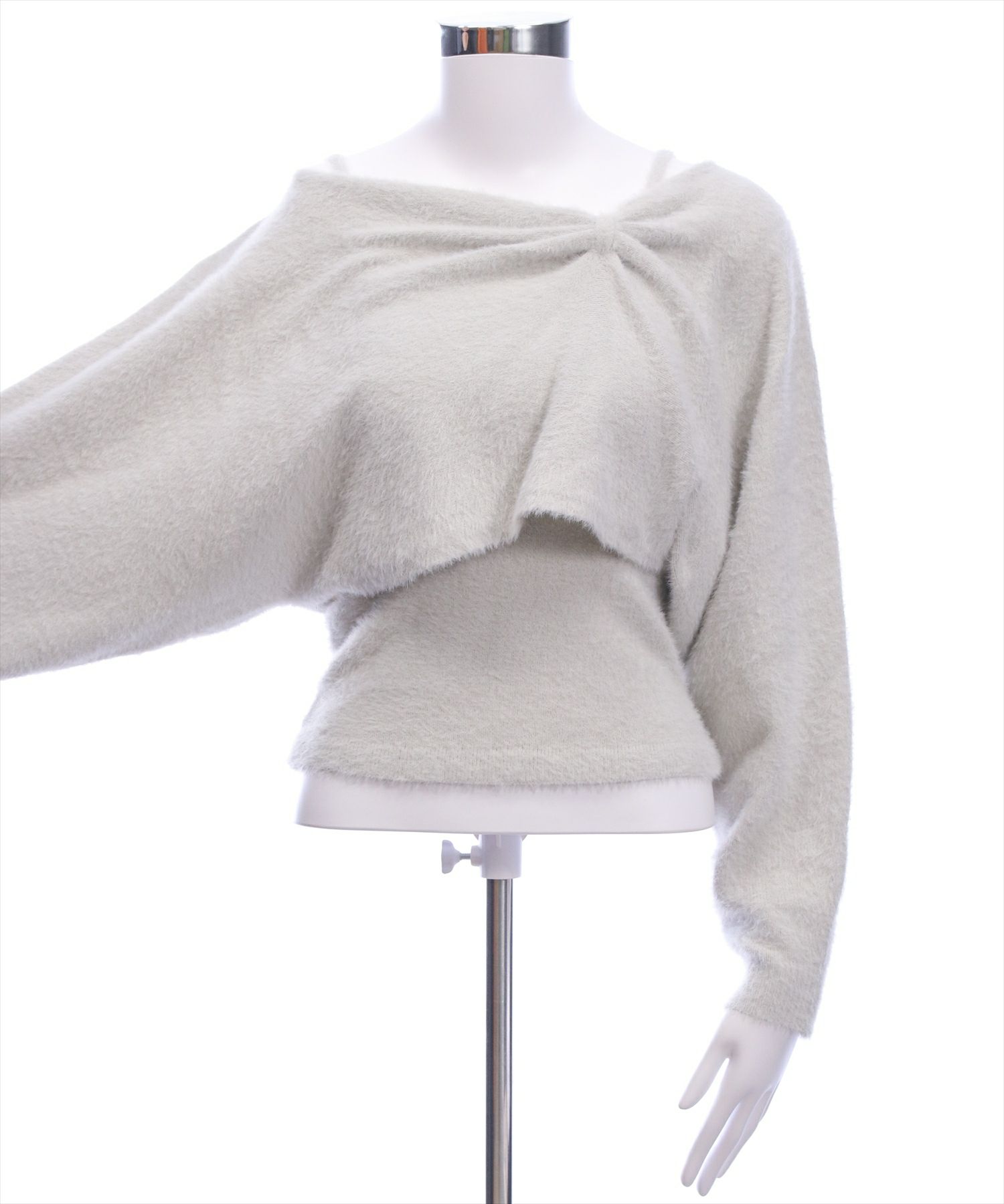 clear≪AW新作≫ワンショルリボンフェザーニットトップス[CL9050]
