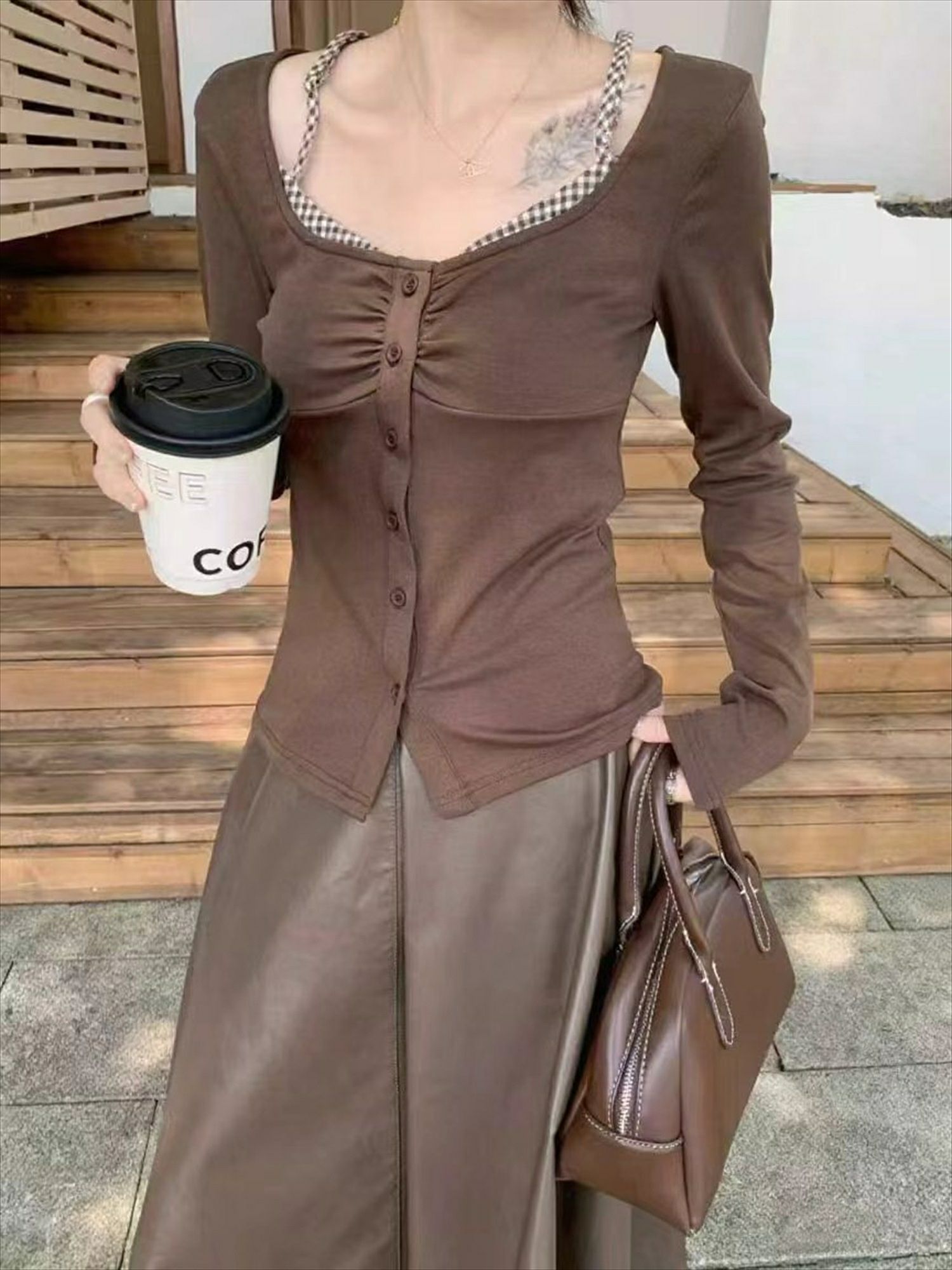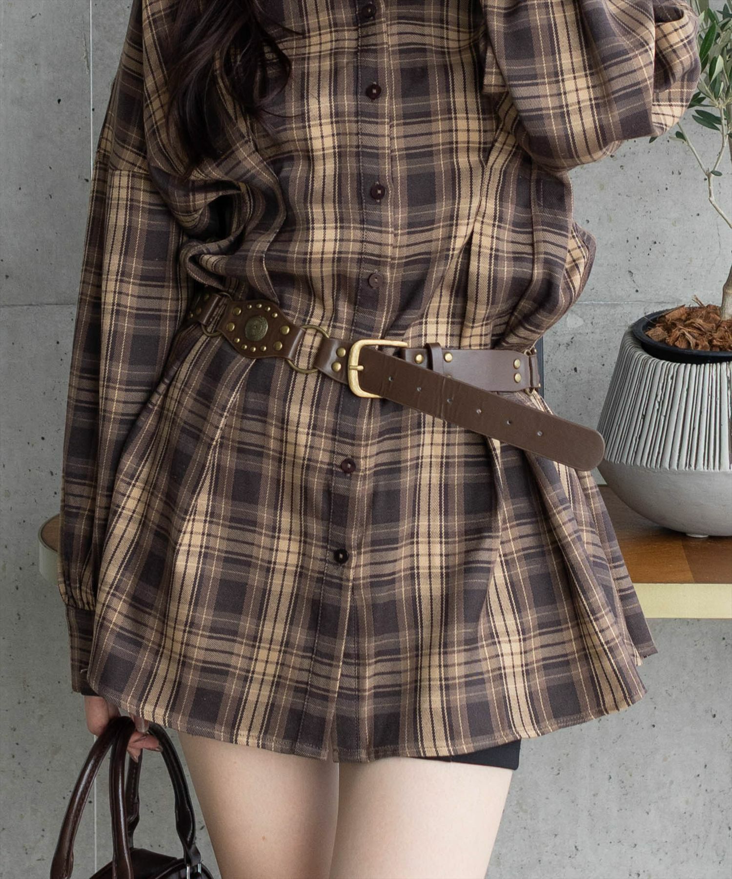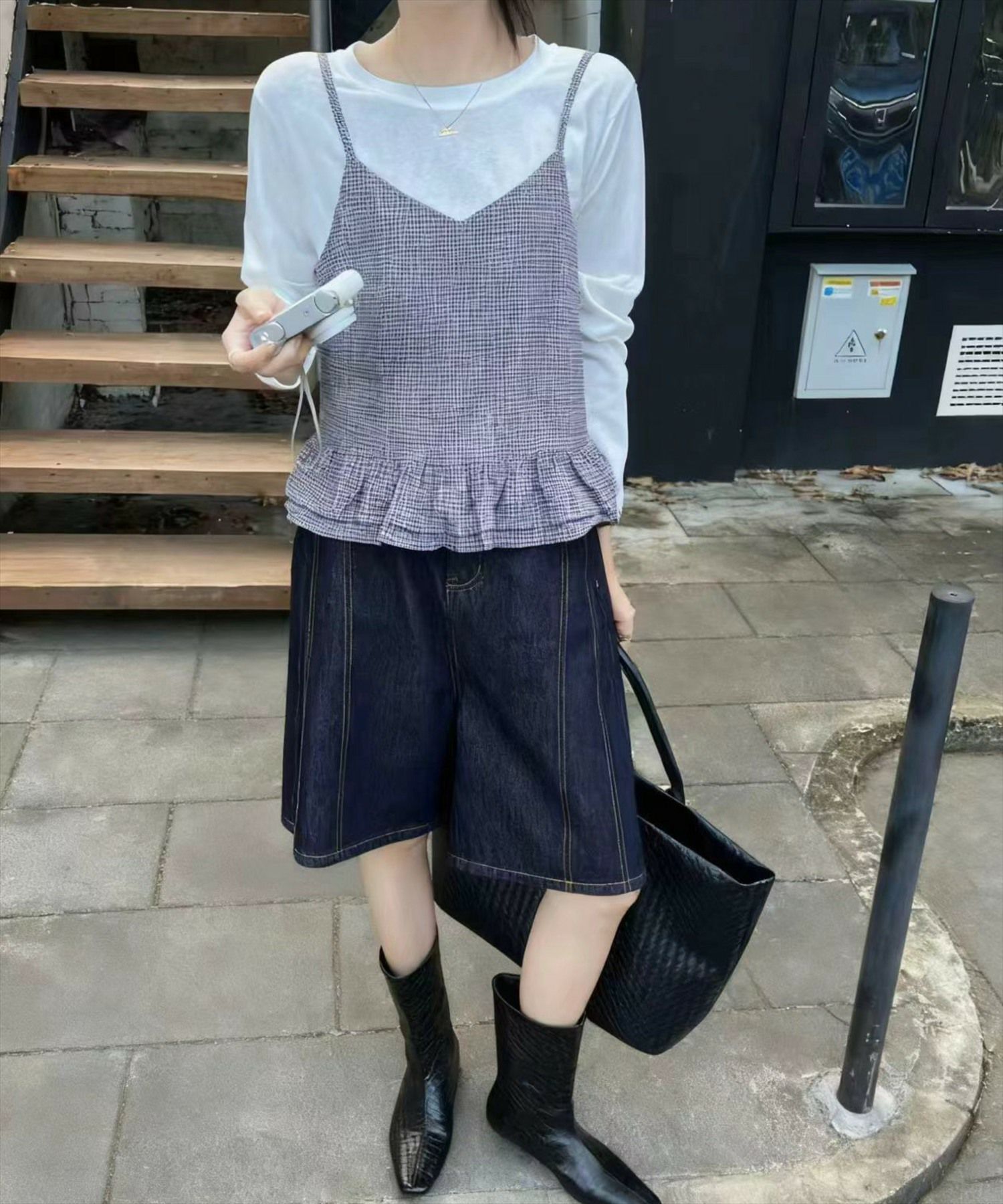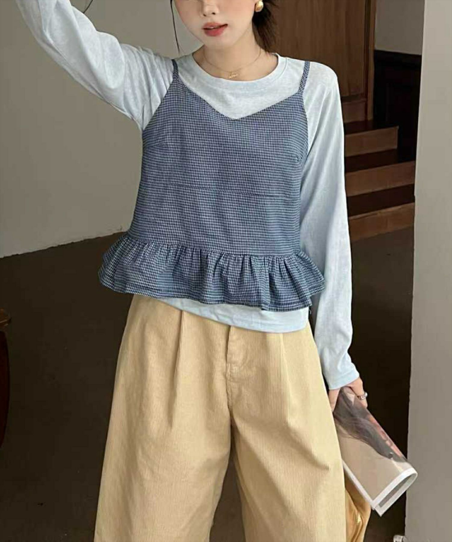 STAY MOTION≪WEB限定/AW新作≫チェック柄裾フリルキャミソールビスチェ付き長袖Tシャツ[ST1025]