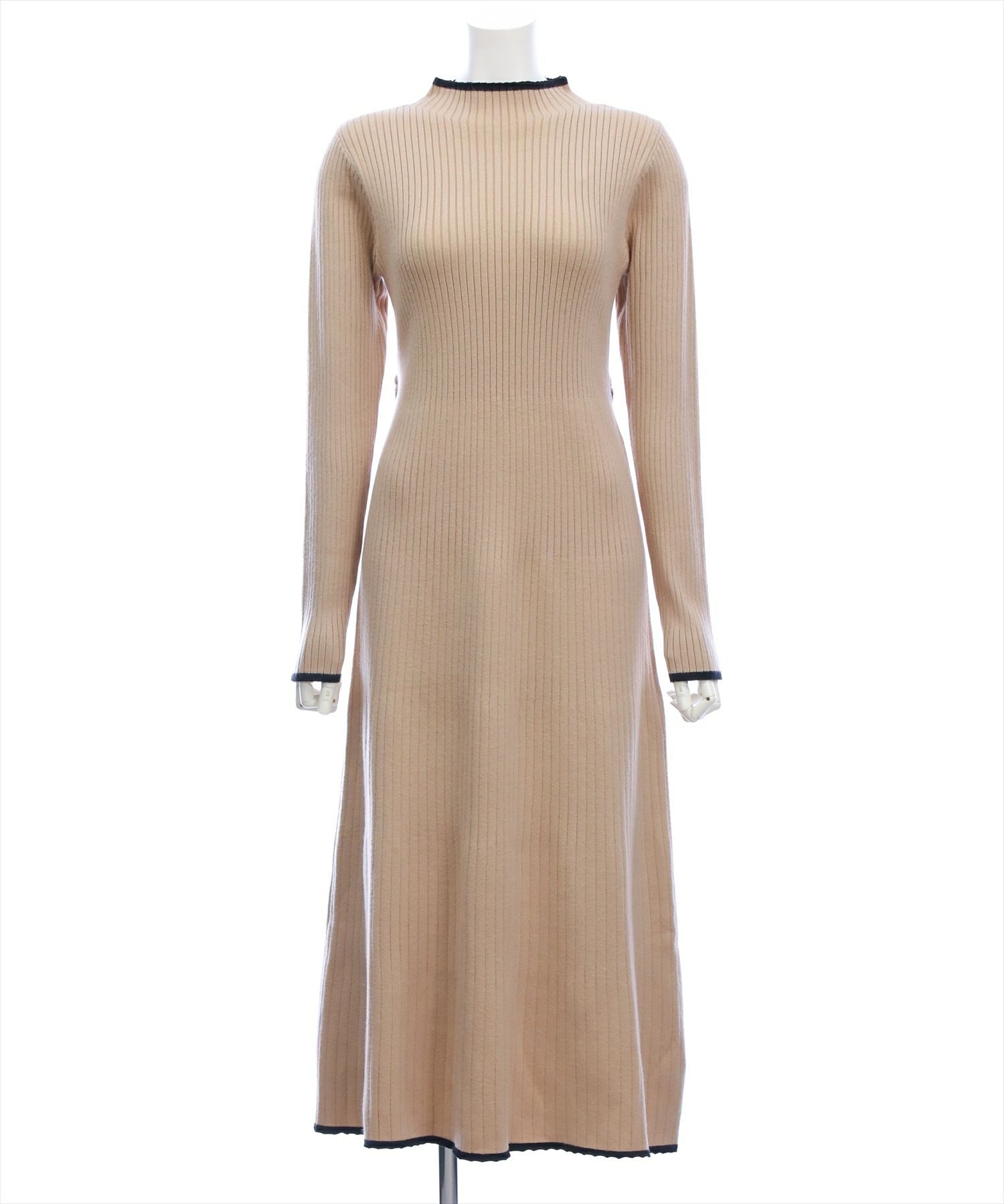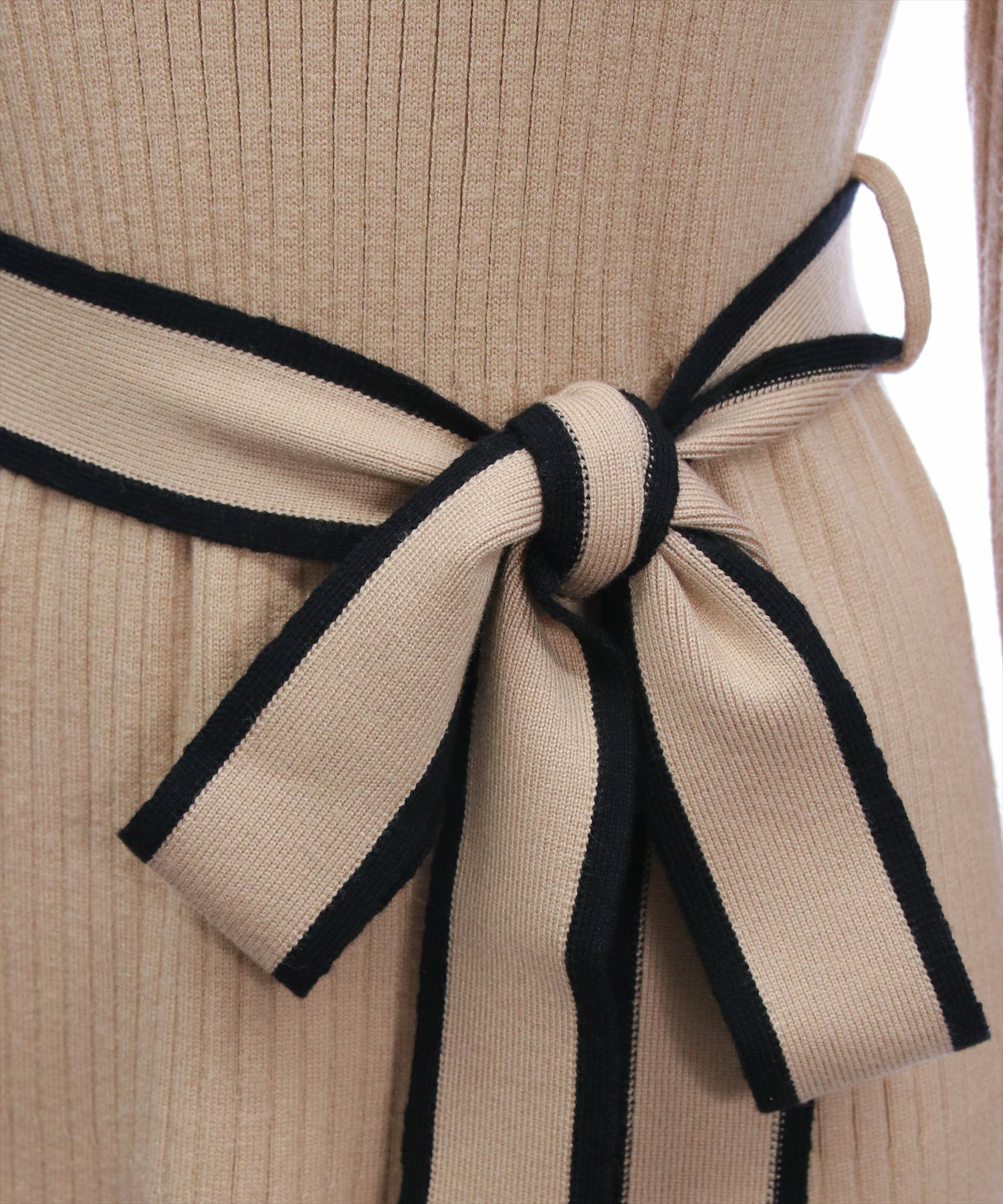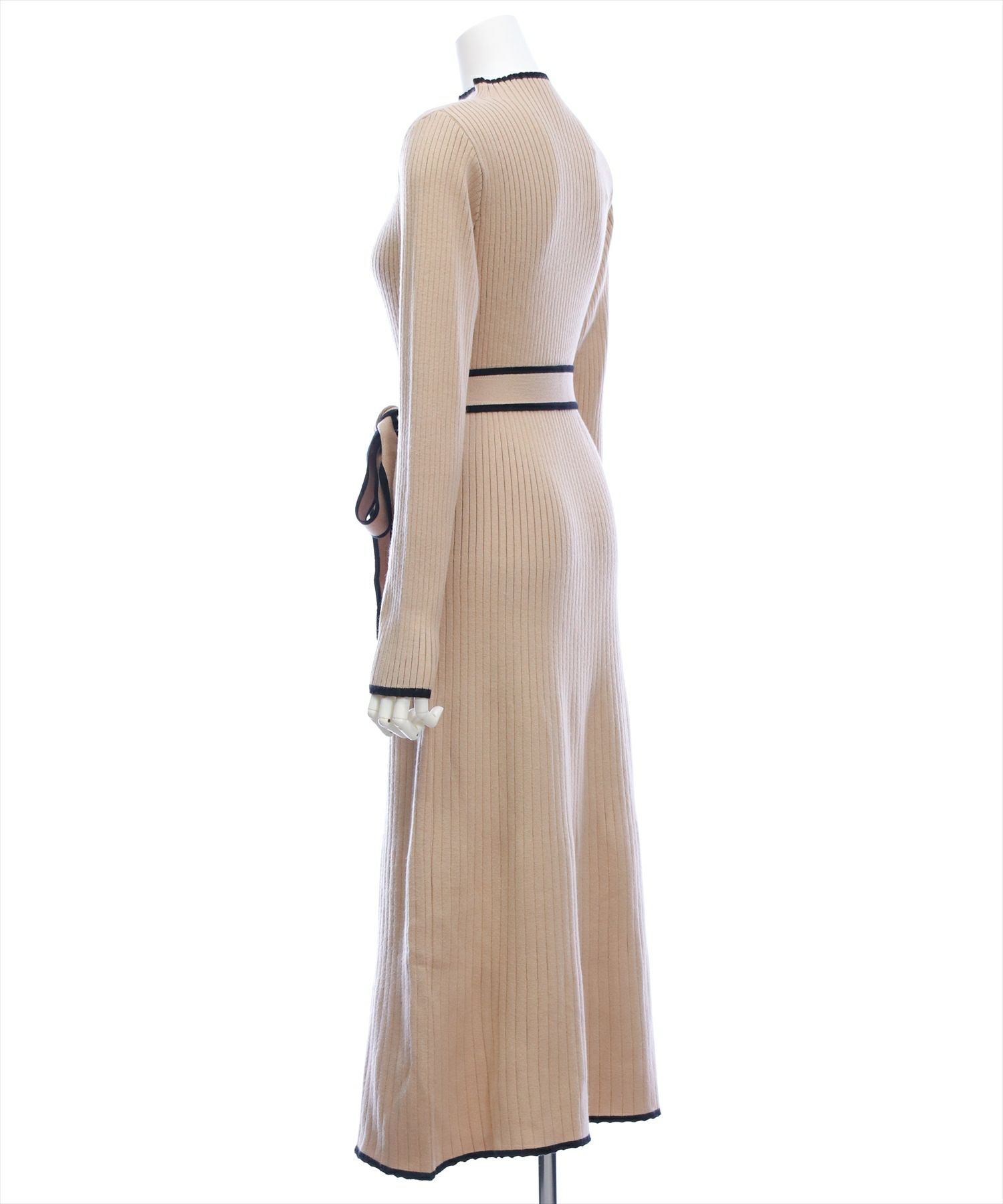 CLEAR BASIC≪AW新作≫配色リボンフレアロングニットワンピース[CL9210]