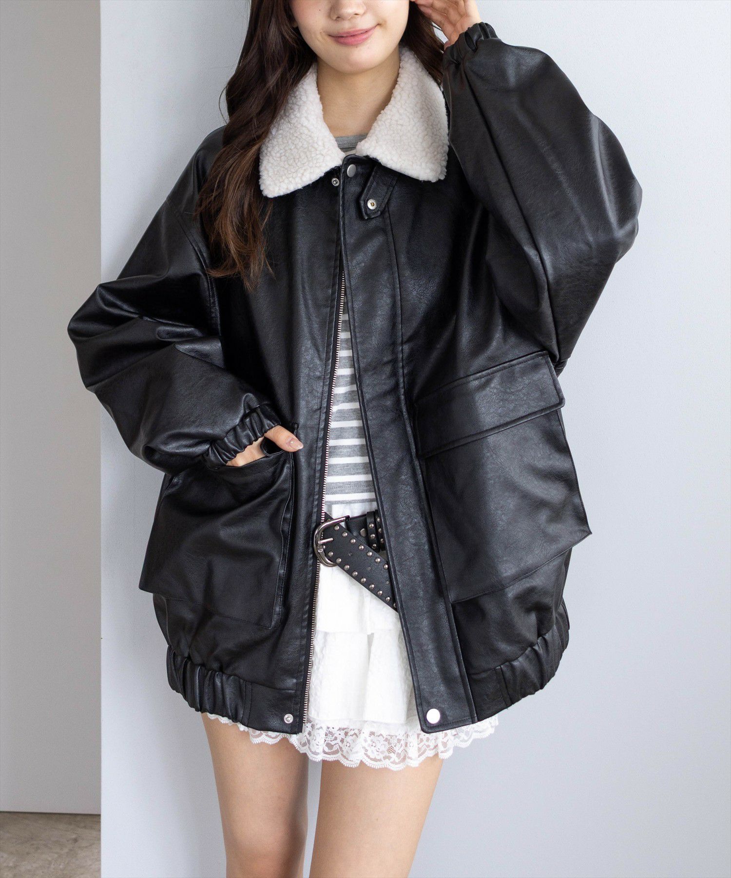 clear≪AW新作≫ボア付きレザーロング丈ブルゾン[CL9089]