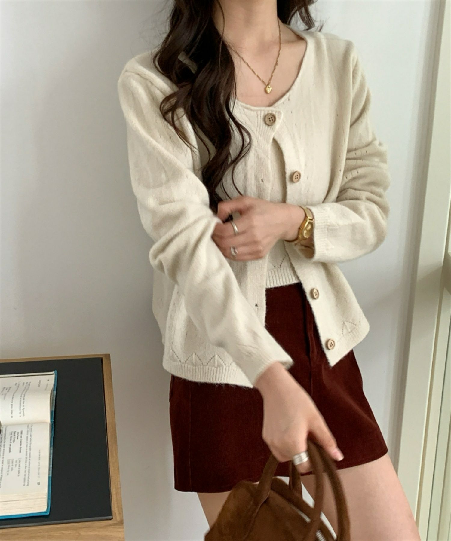 STAY MOTION≪WEB限定/AW新作≫ウッドボタンニットカーディガン+キャミアンサンブル[ST1031]