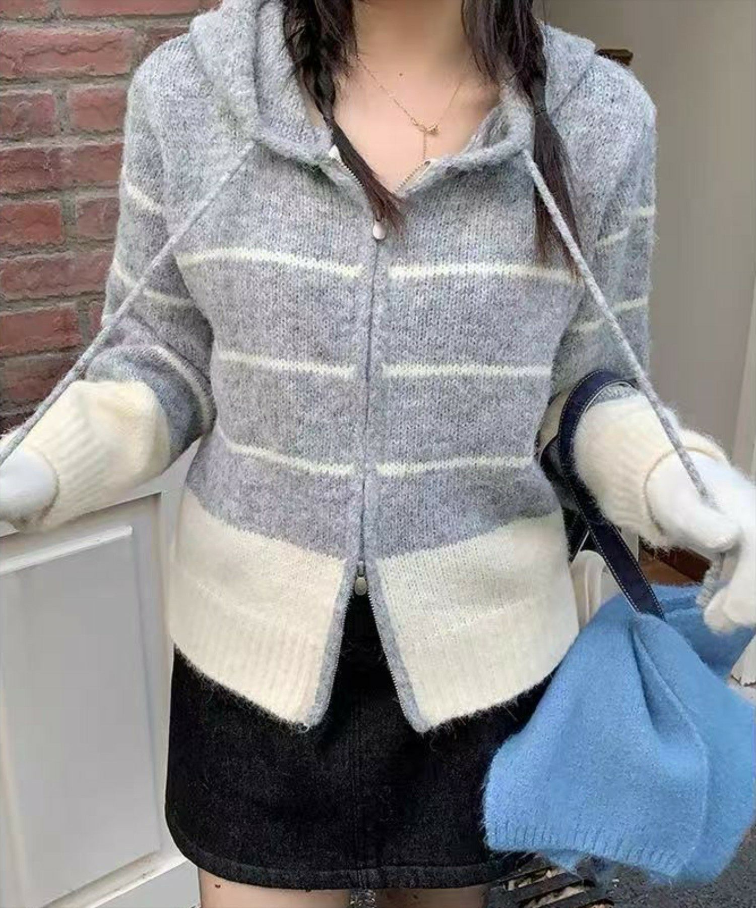 STAY MOTION≪WEB限定/AW新作≫配色ダブルジップニットフーディー[ST1032]
