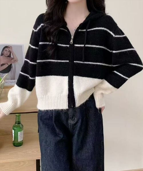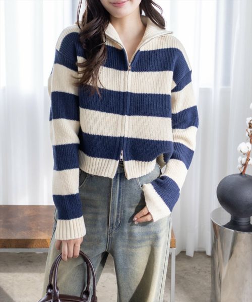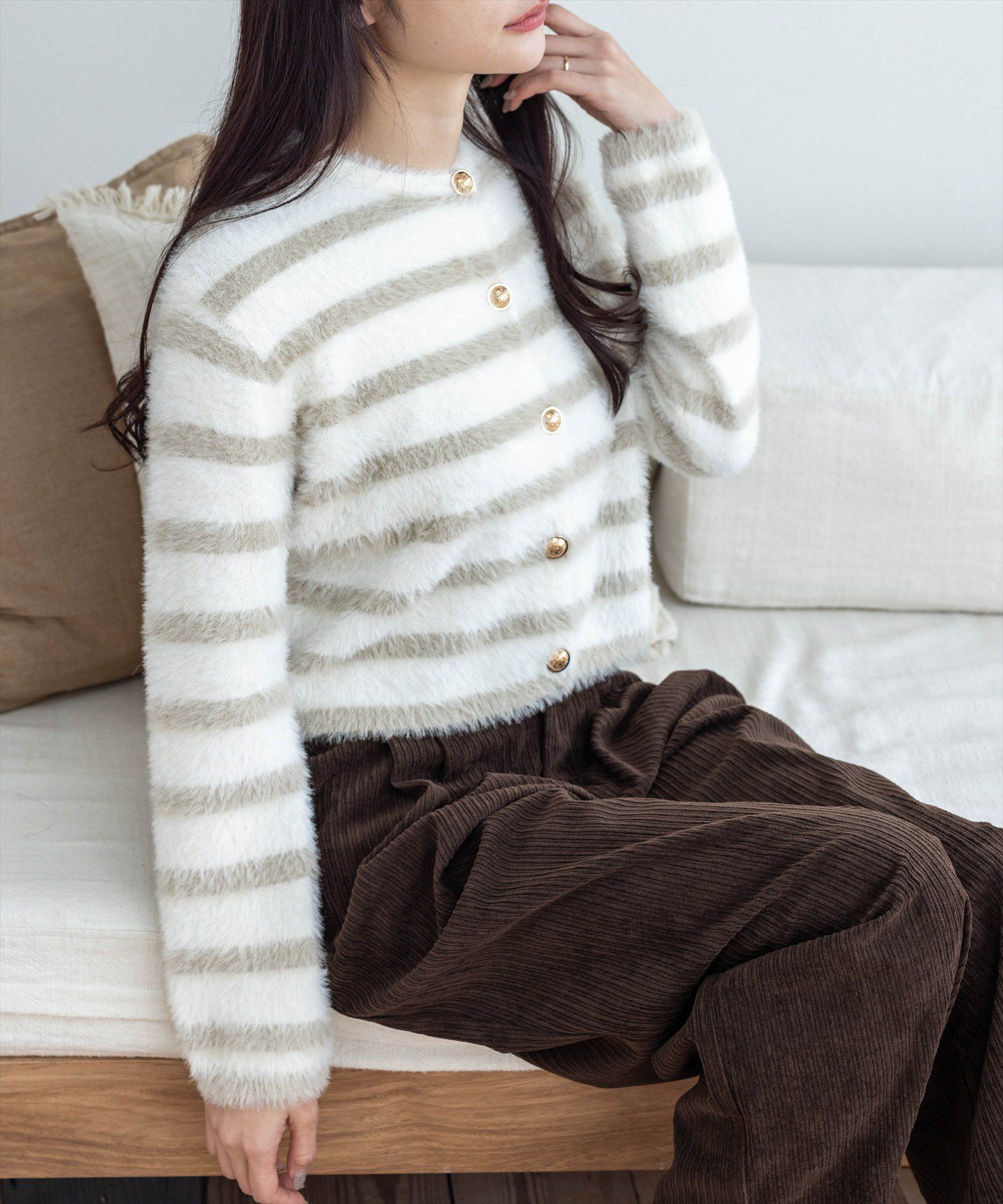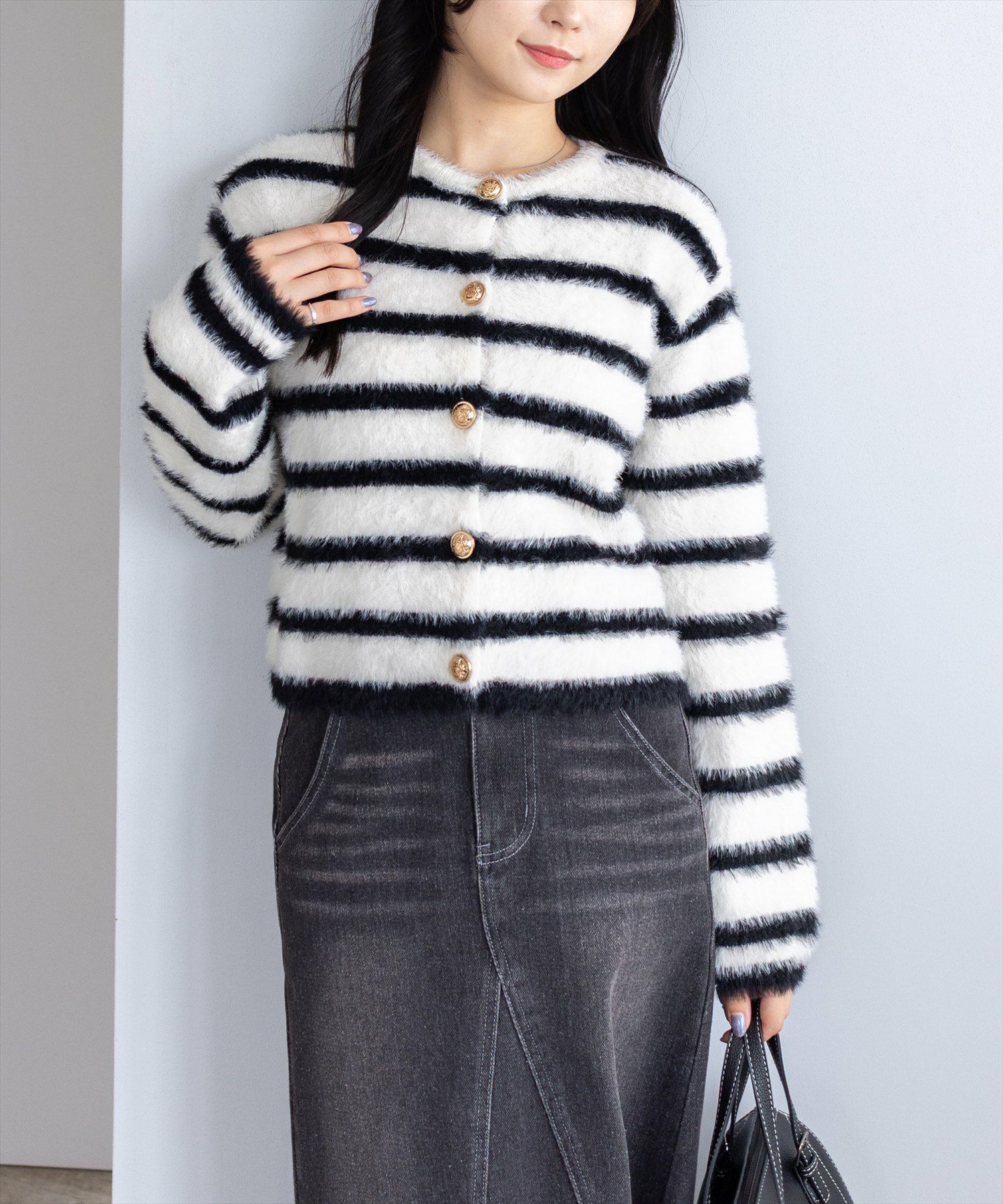 CLEAR BASIC≪AW新作≫ボーダーフェザーニットカーディガン[CL9049]