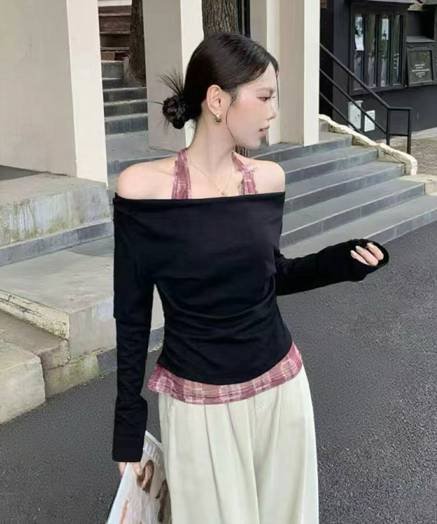 STAY MOTION≪WEB限定/AW新作≫チェック柄ホルターネックオフショルダートップス[ST1045]