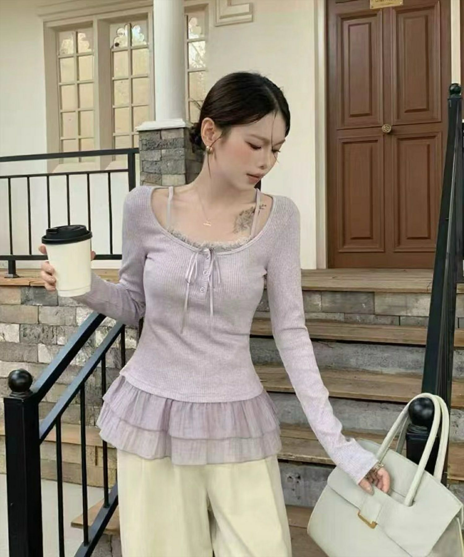 STAY MOTION≪WEB限定/AW新作≫レイヤード風配色裾レースカットソートップス[ST1050]
