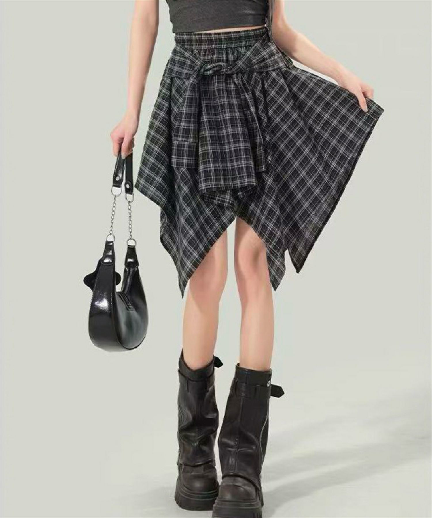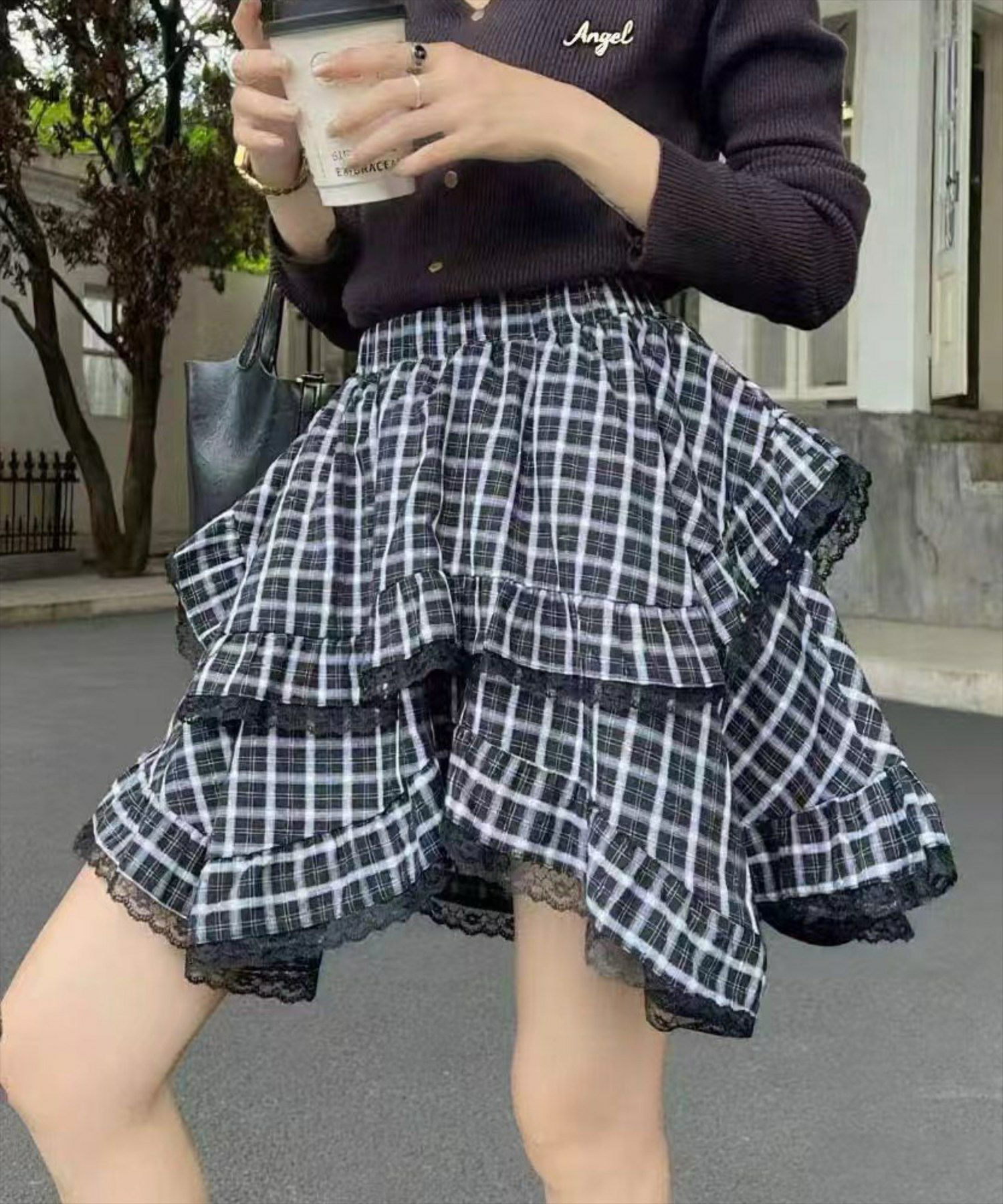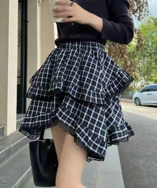 STAY MOTION≪WEB限定/AW新作≫裾アシンメトリーチェック柄フリルミニスカート[ST1052]