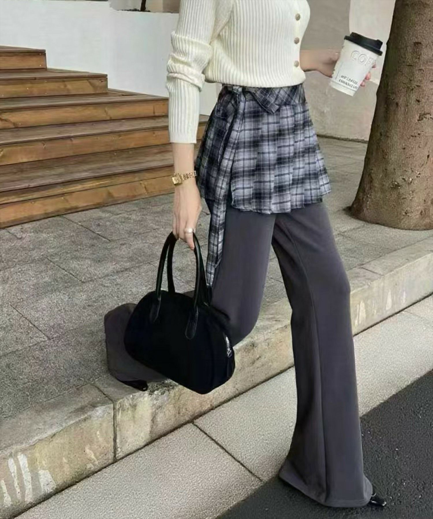 STAY MOTION≪WEB限定/AW新作≫チェック柄レイヤードラップスカートパンツ[ST1057]