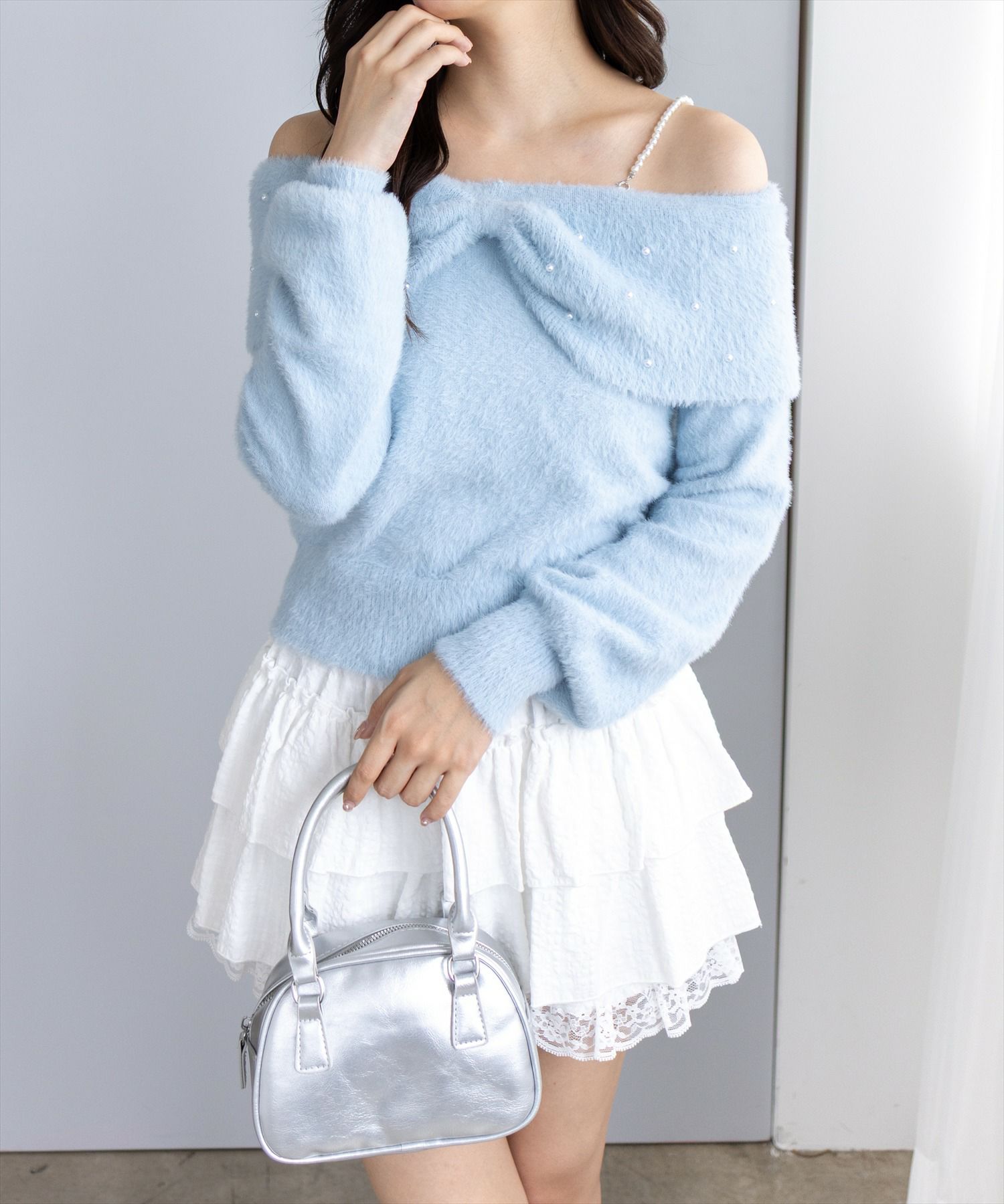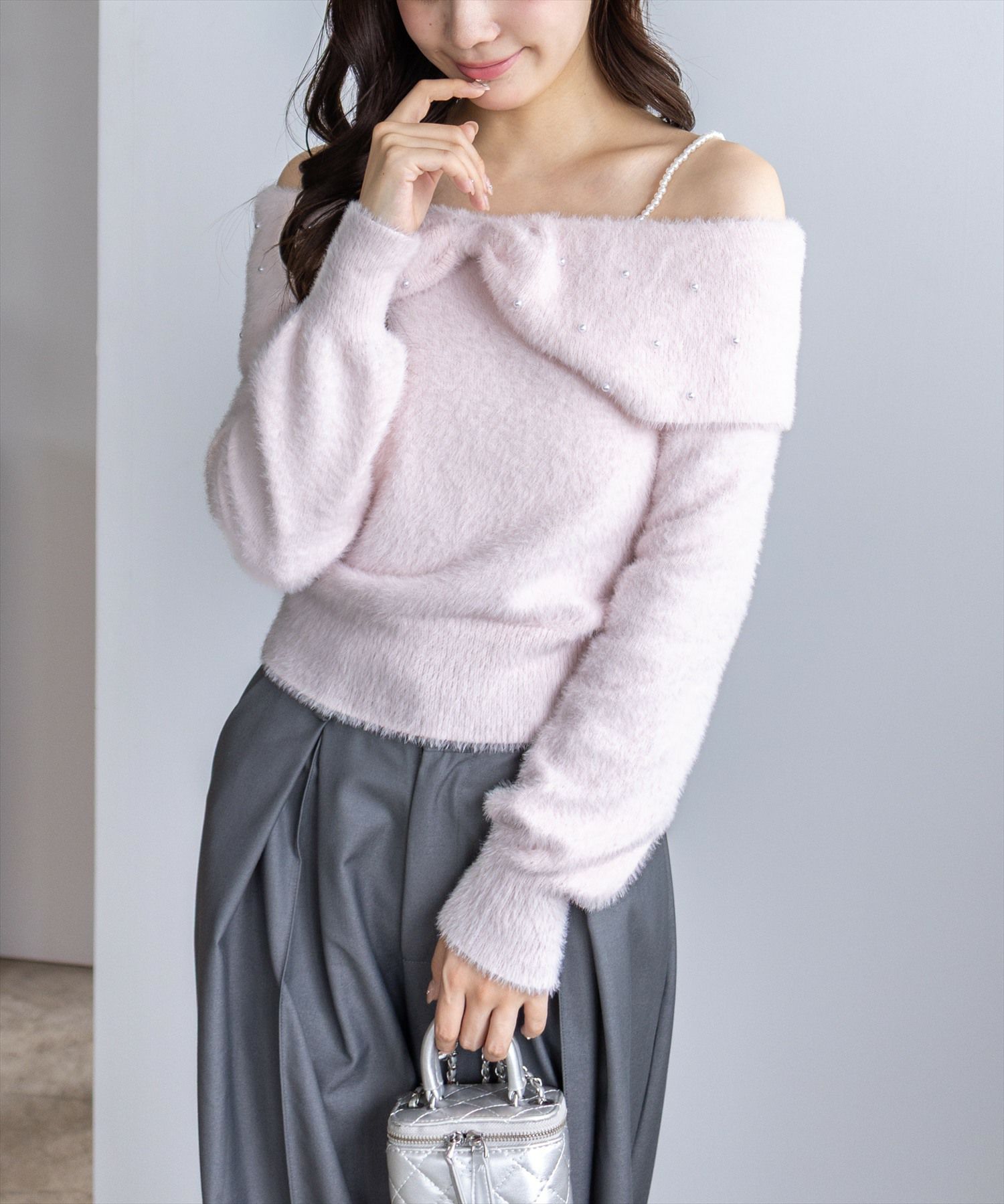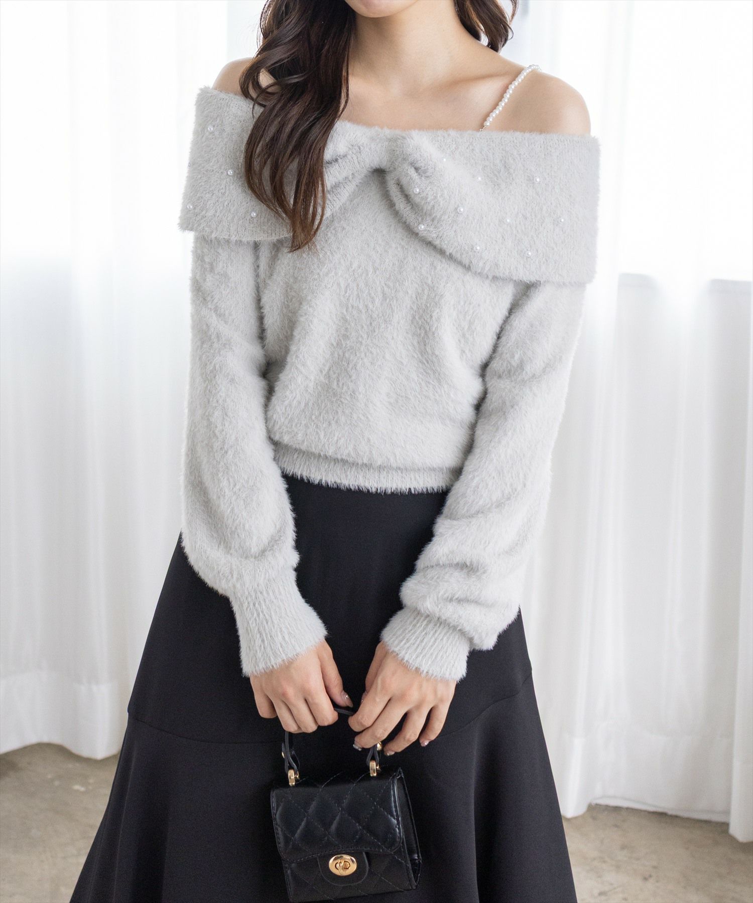 clear≪AW新作≫パールデザインフェザーオフショルニットトップス[CL9047]