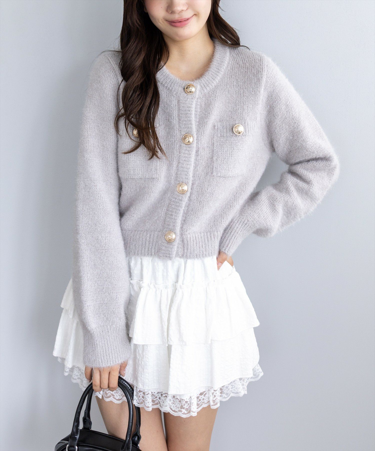 clear≪AW新作/新色追加≫ビジューボタンフェザーショートカーディガン[CL9059]