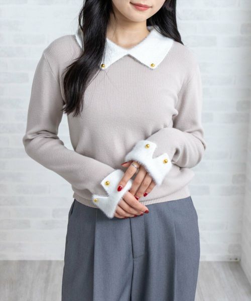 clear≪WEB限定≫フェザー配色襟付ニット[CL7784]