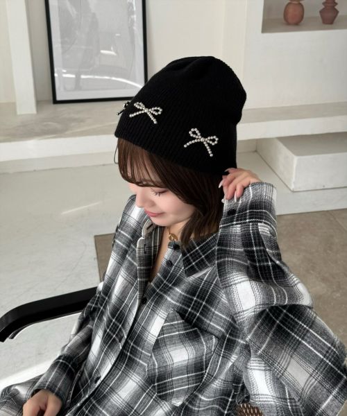 clear≪新色追加≫リボンビジューニット帽[CL8825]