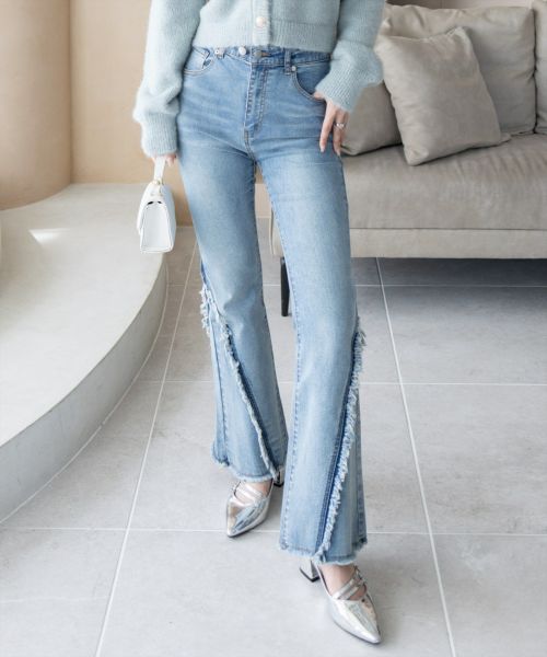 clear≪再入荷≫ミドルライズフリンジフレアデニムパンツ[CL9029]
