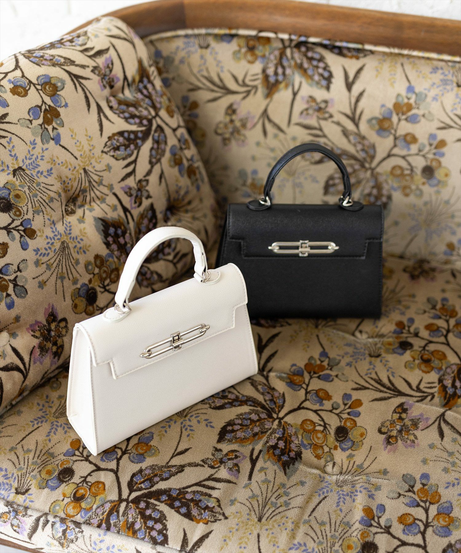 シンプルだから長く使える!クラシックスクエアミニバッグ。スクエアフォルムが上品な印象を与える、クラシックデザイン♪フロントのメタルディティールがさりげないアクセントになり、シンプルながらも洗練された雰囲気に仕上げました。きれいめスタイルからカジュアルまで幅広く合わせやすい◎