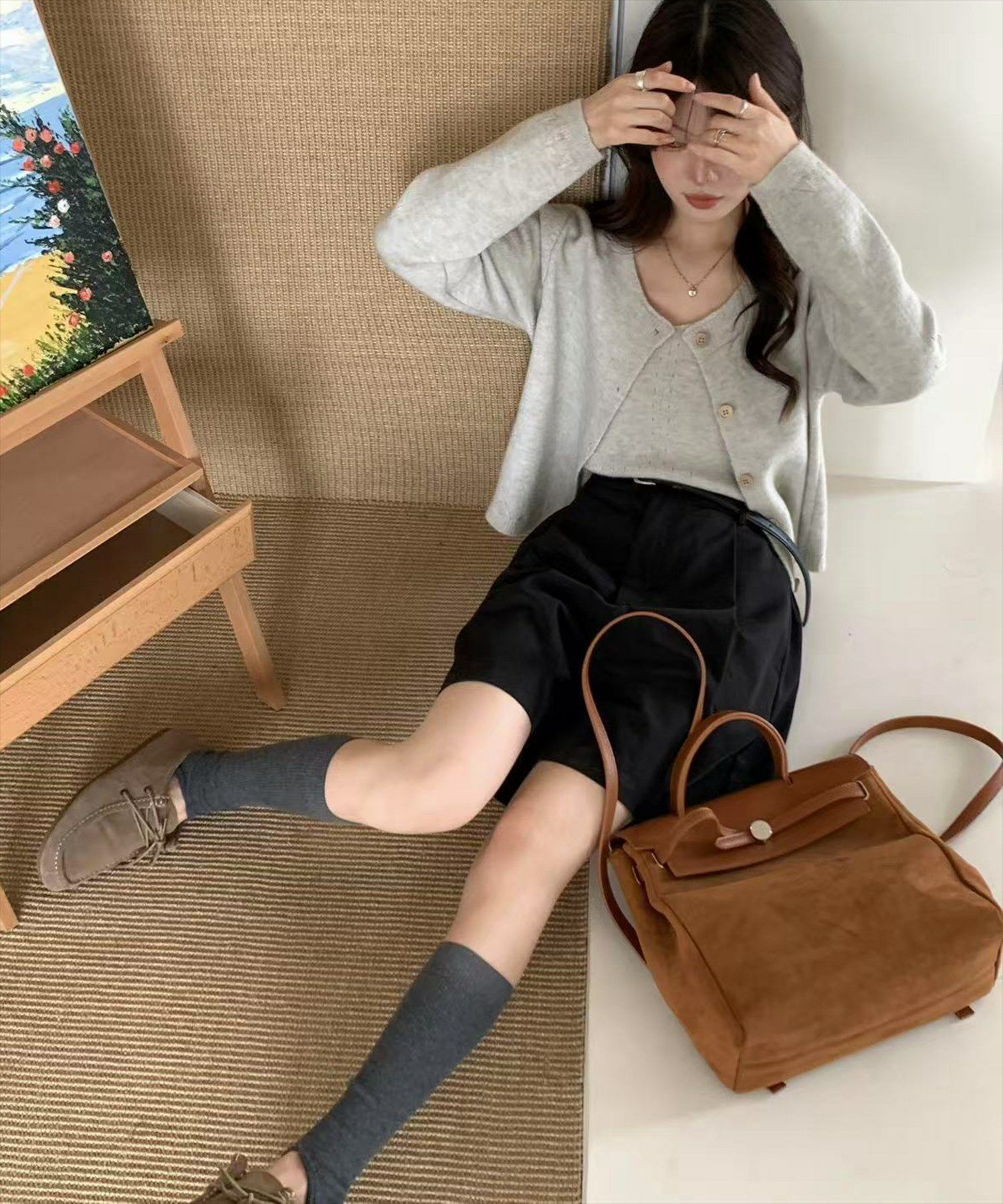 季節の変わり目にぴったり!ウッドボタンニットカーディガン+キャミアンサンブル