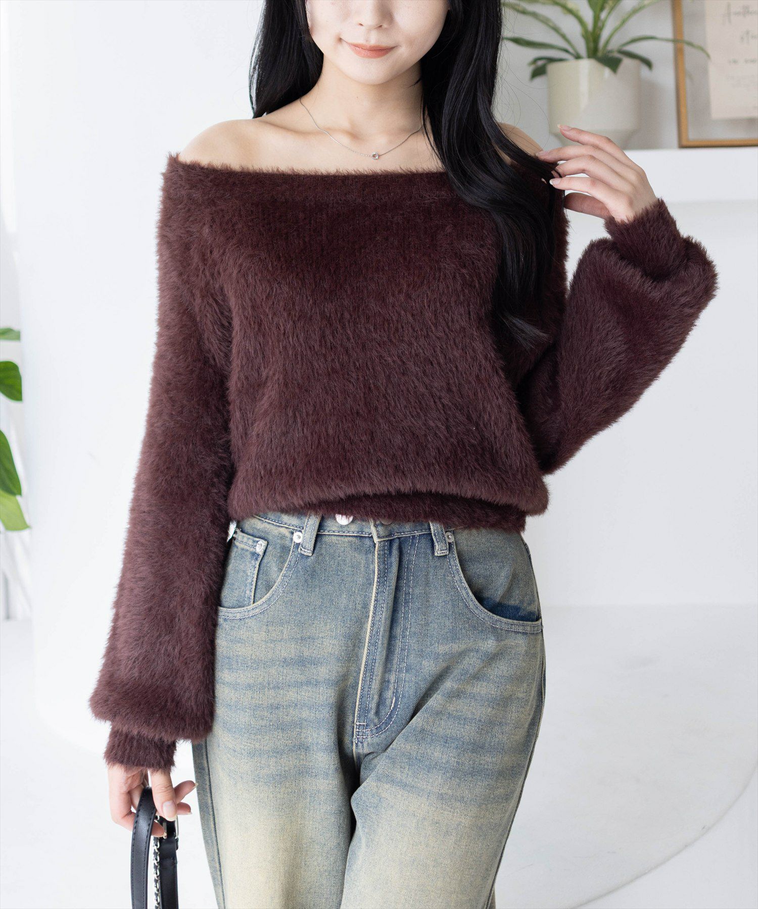 CLEAR BASIC≪AW新作/再入荷≫オフショル風ボタンリブニットトップス[CL9167]