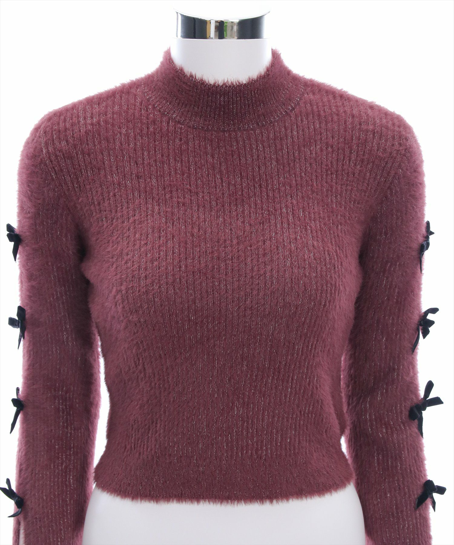 clear≪AW新作/再入荷≫袖リボン付きラメフェザーニットトップス[CL9060]