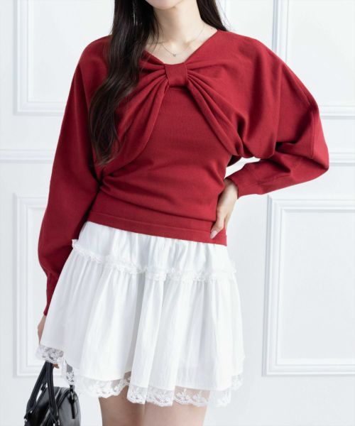 clear≪AW新作≫布帛ボウタイパワショルニットトップス[CL9162]