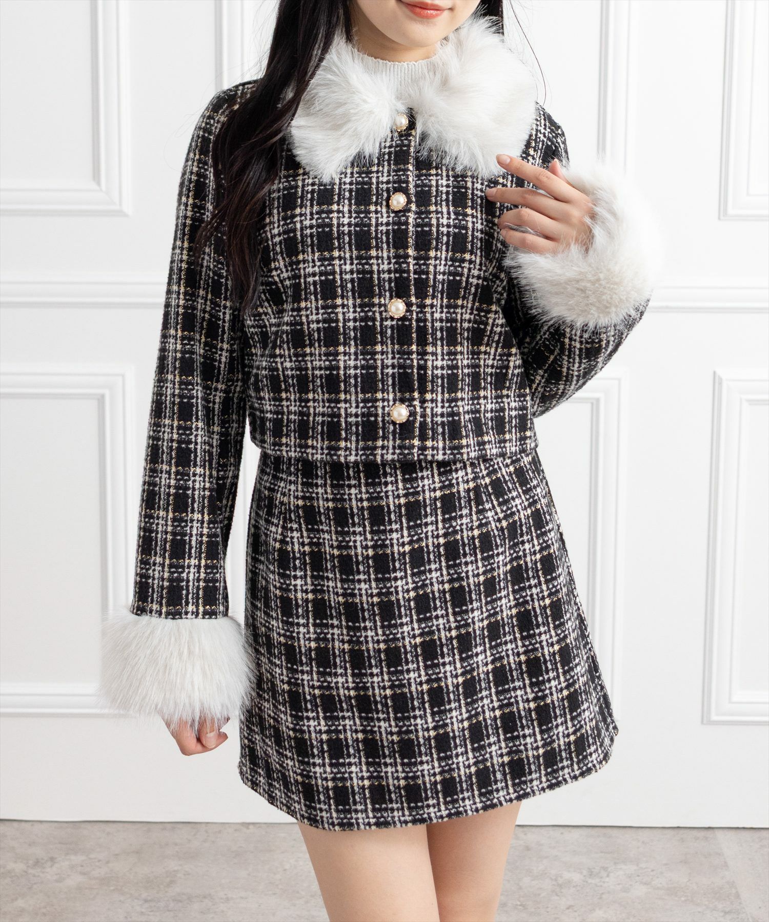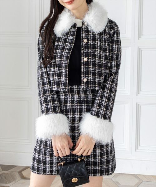 clear≪AW新作≫ファー付きツイードジャケット(セット可) [CL9303]