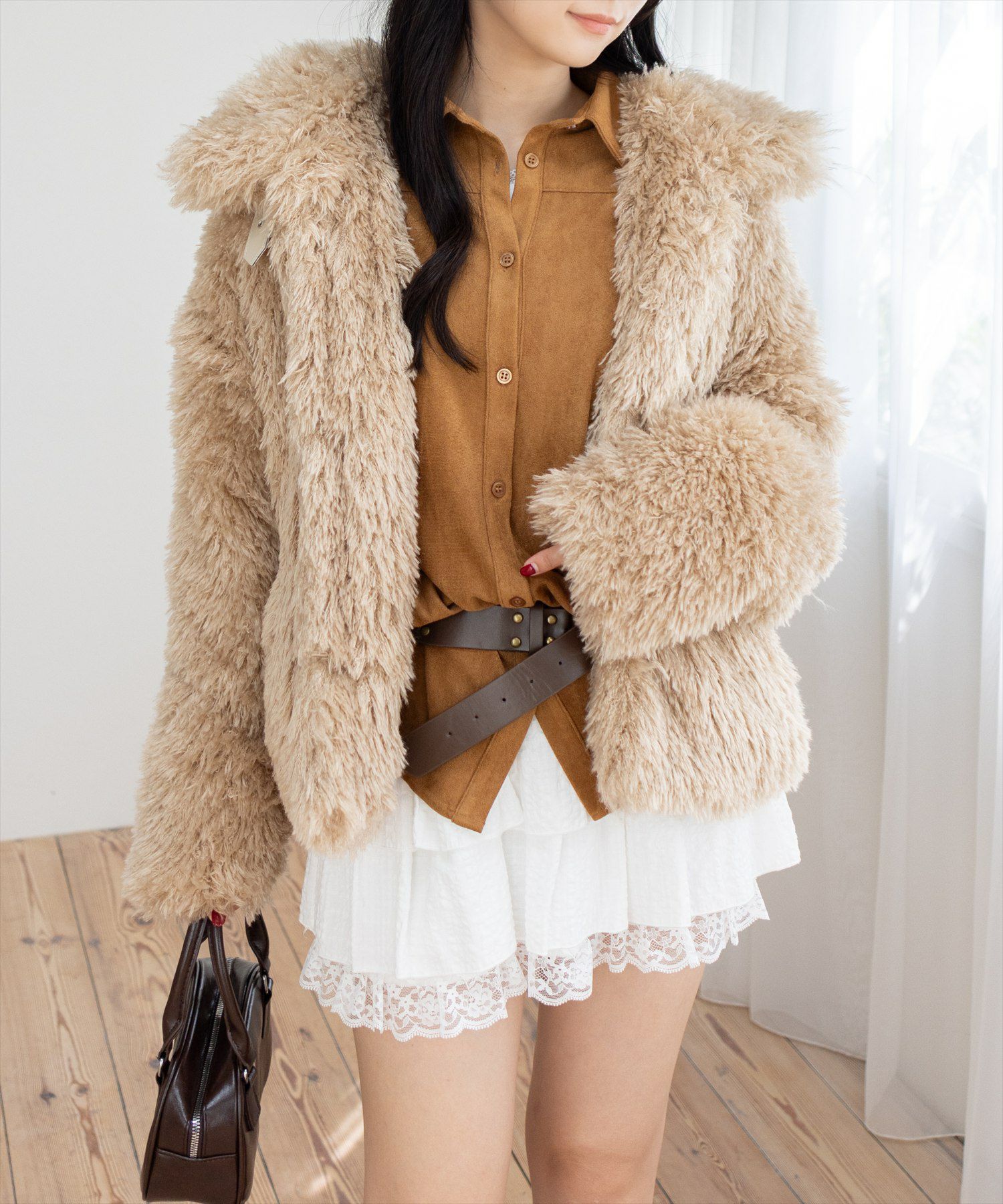clear≪WEB先行販売/AW新作≫ベルト付きミドルファーコート[CL9082]
