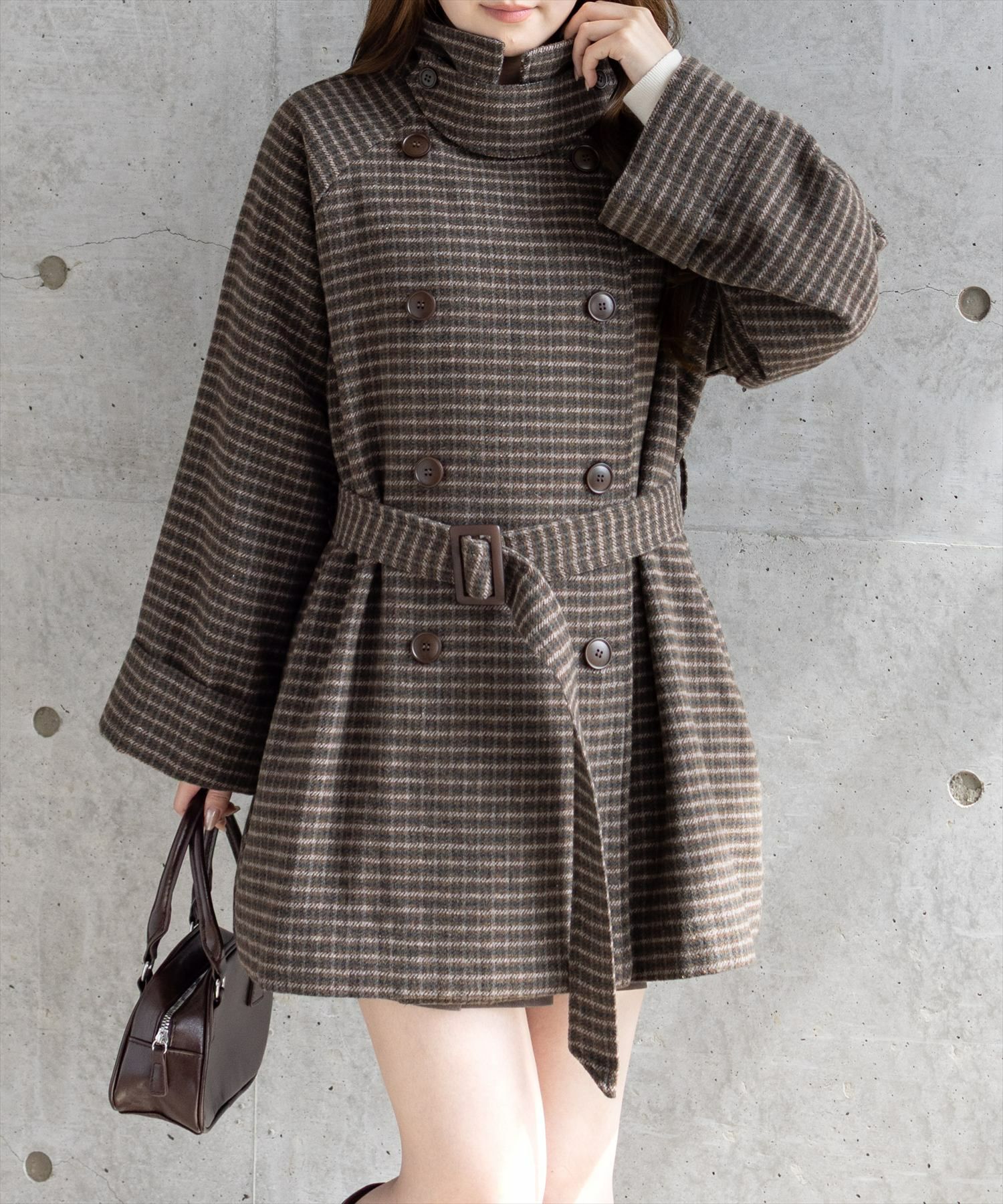 clear≪WEB先行販売/AW新作≫スタンドカラーダブルミドルチェックコート[CL9081]