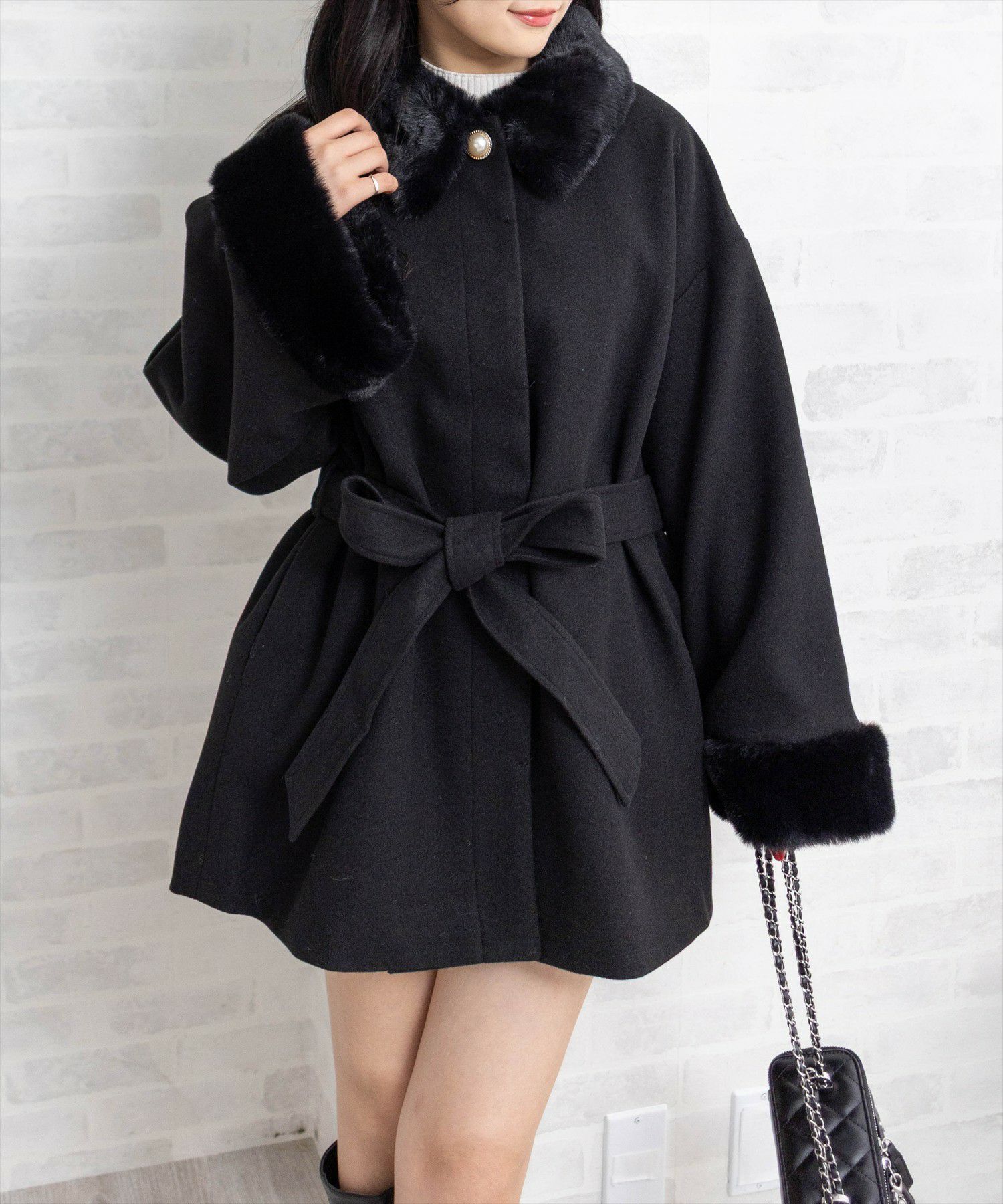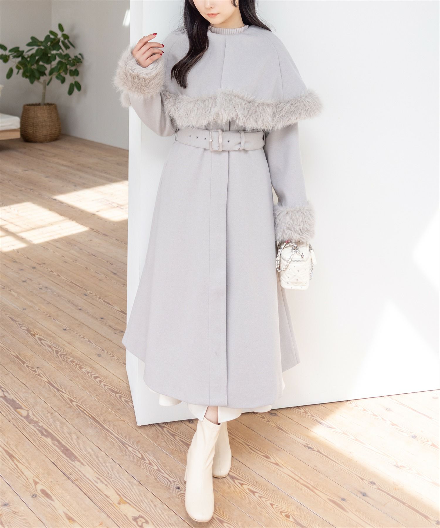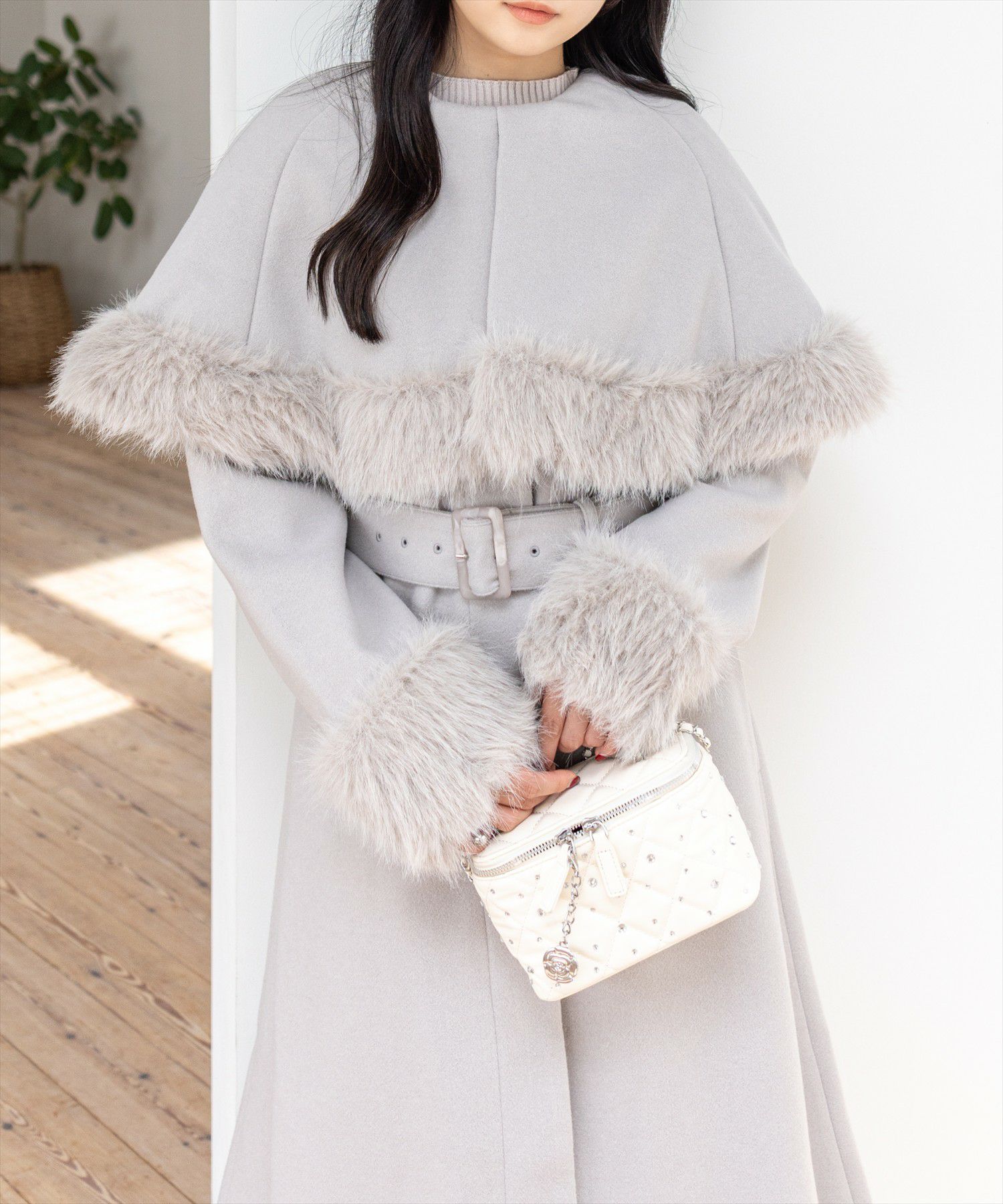 CLEAR BASIC≪WEB先行販売/AW新作≫ファー付き2wayケープロングコート[CL9087]