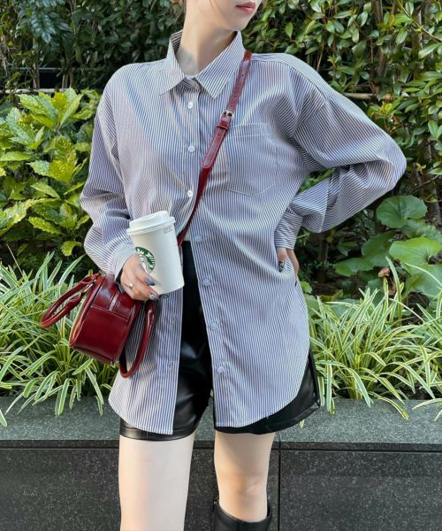 1着は持っておきたい定番アイテム!オーバーサイズストライプシャツ【デザイン】ゆっるとしたサイズ感が可愛いストライプシャツです。さらに着丈が長く、気になる部分をカバーしてくれます♪着回しやすいトレンドに左右されないベーシックなデザインです!【コーディネート】羽織りとしてもトップス使いもできる万能アイテムです!秋冬はニットやスウェットとのレイヤードコーデもオススメです◎