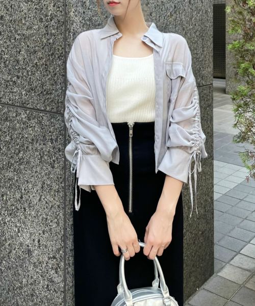 ロングシーズンご着用いただける!袖シャーリングショートシャツ【デザイン】トレンド感のある袖シャーリングがポイントのシアーシャツです。シャーリングで袖丈を調節できるので、長くご着用いただけます♪シアー感のある生地でヘルシーな肌見せが叶います!【コーディネート】インナーとのレイヤードコーデをお楽しみいただけます!ワンピースの羽織りとしてもご着用いただけます◎