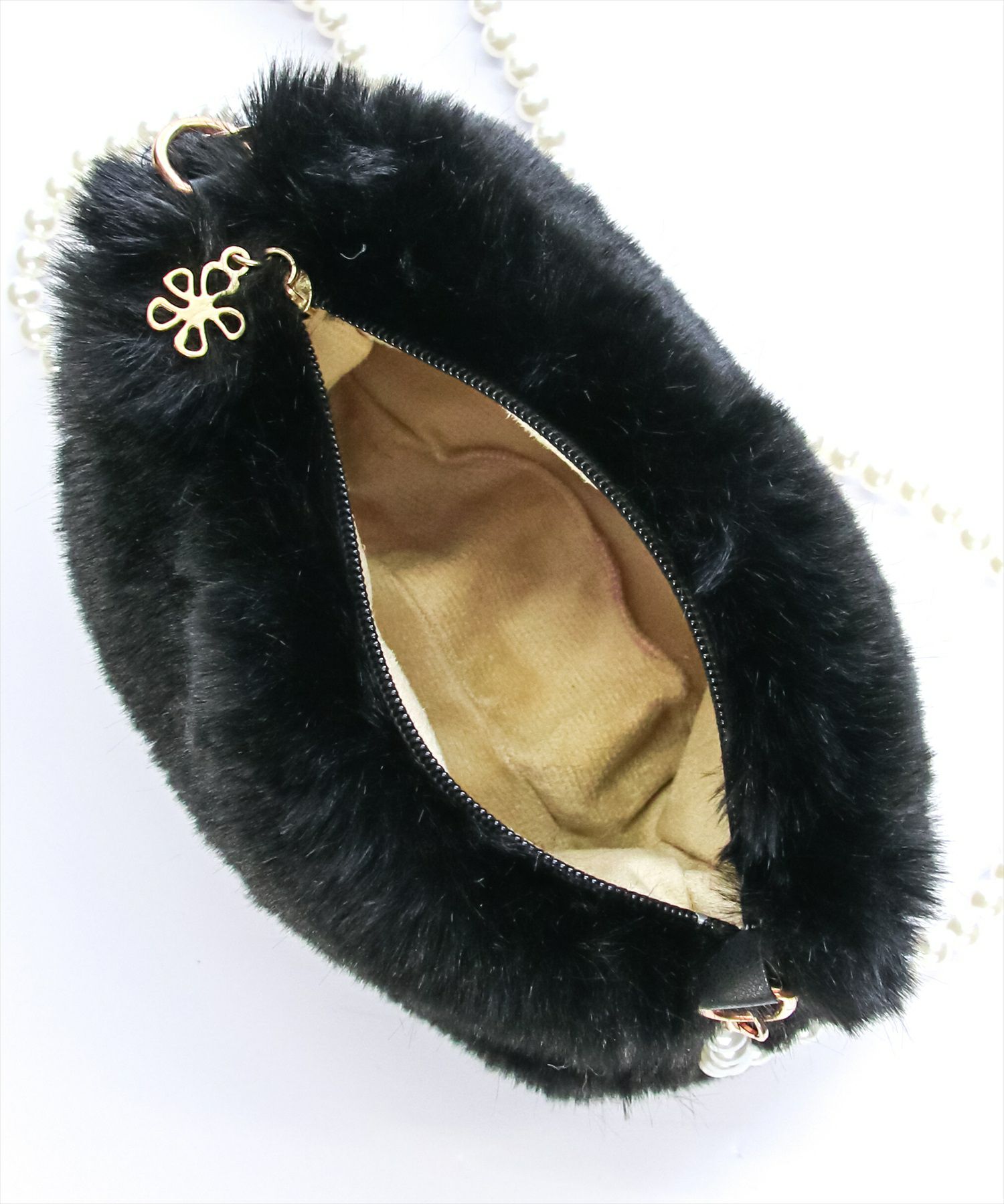 存在感抜群!パールショルダーファーバッグ。パールとファーの組み合わせが華やかなバッグ♪コンパクトながらも季節感たっぷりでコーデのアクセントになります!ファスナーについたチャームもワンポイントで可愛さアップです!