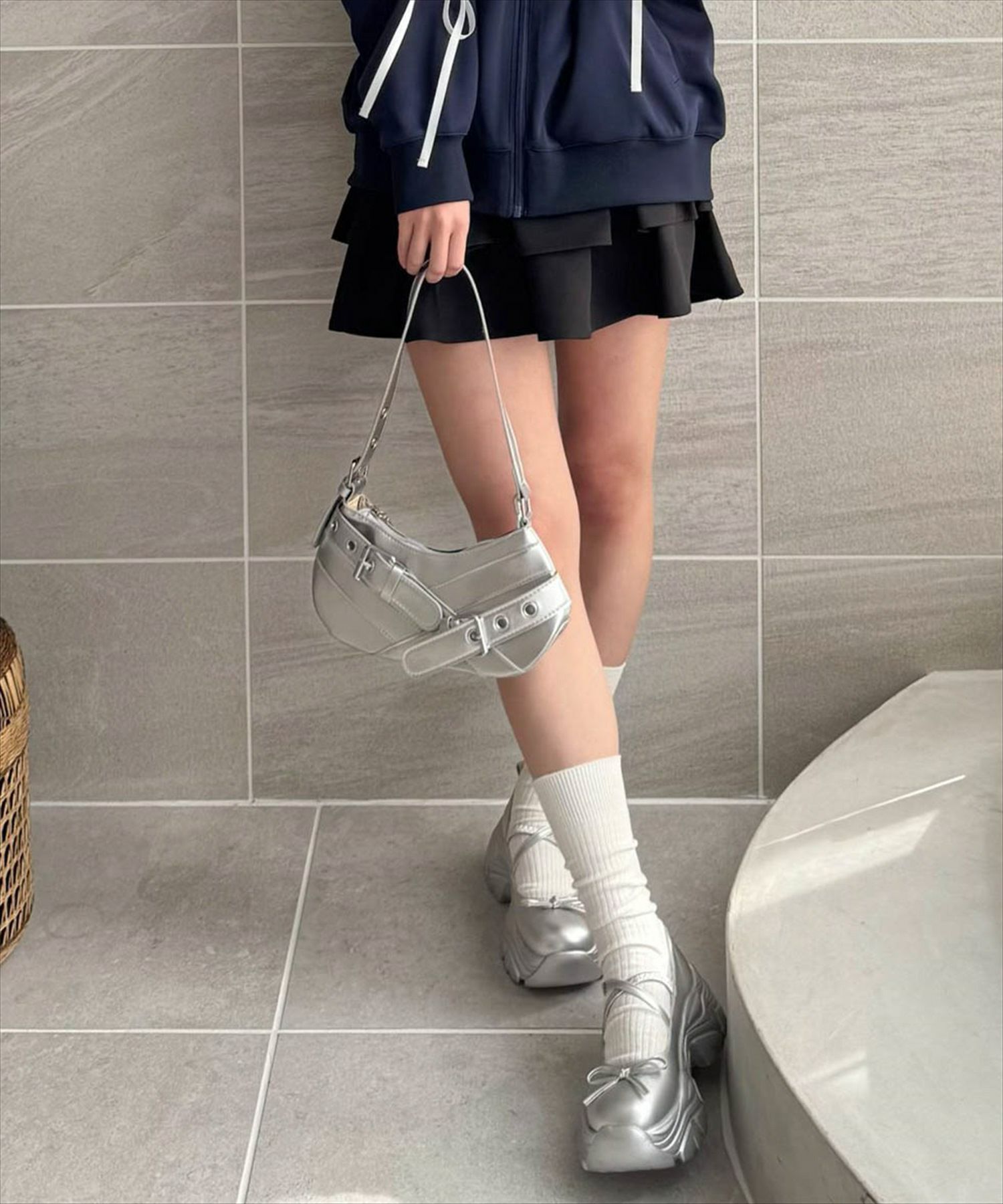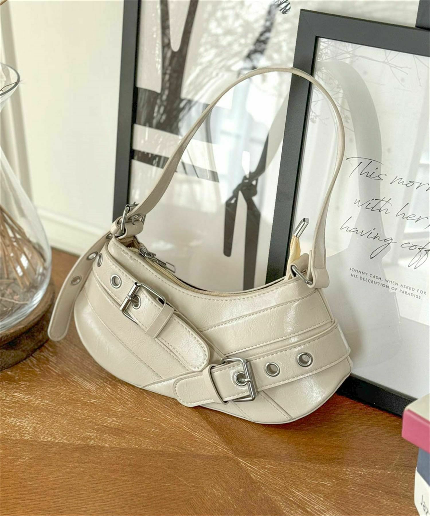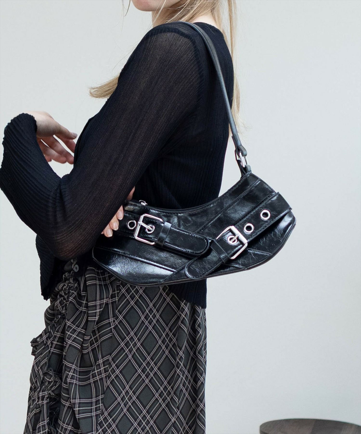 コーデのアクセントになる!ダブルベルテッドショルダーバッグ。存在感がありながらもコーデに取り入れやすいベルトデザインのワンハンドルバッグ♪様々なシーンで活躍してくれるコンパクトなサイズ感◎スタイリッシュなデザインなので持つだけでお洒落感アップしてくれます!