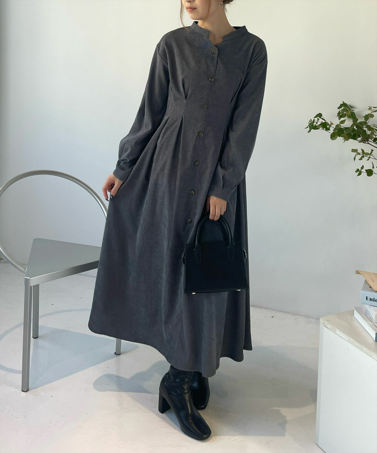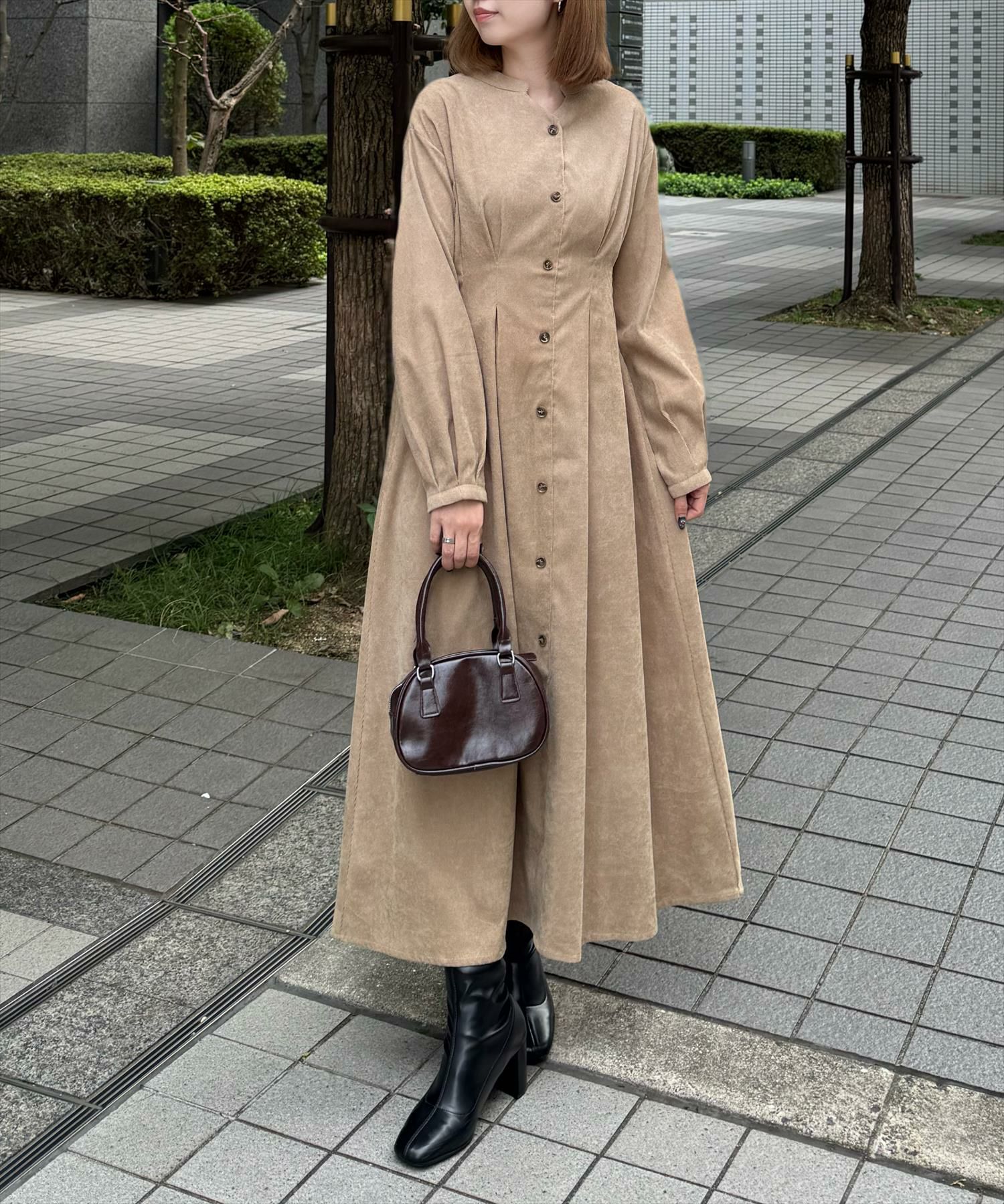 1着でコーデが決まる!細コーデュロイVネック長袖ワンピース【デザイン】コーデュロイ素材なので、着るだけで秋らしいコーデが叶うワンピースです。首元はVネックで広めなので首元の華奢見えが叶います!さらにウエストにタックが入っているので、自然とスタイルアップして見えます♪【コーディネート】1枚でコーデが完成します◎ブーツ合わせや、アウター合わせでコーデの雰囲気を変えていただけます♪