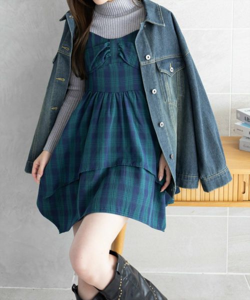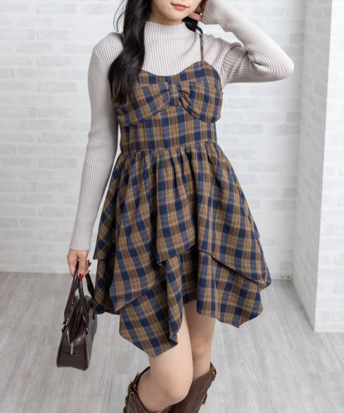 1枚でもコーデが決まる!柄アソートキャミワンピース【デザイン】存在感のあるチェック柄や花柄が可愛いワンピースです。胸元のリボンデザインで女の子らしい印象になります!高めの位置でウエストが切替られているので、自然とスタイルアップが叶います♪【コーディネート】インナー次第でロングシーズンご着用いただけます♪足元はロングブーツはもちろん、スニーカー合わせでカジュアルにも◎