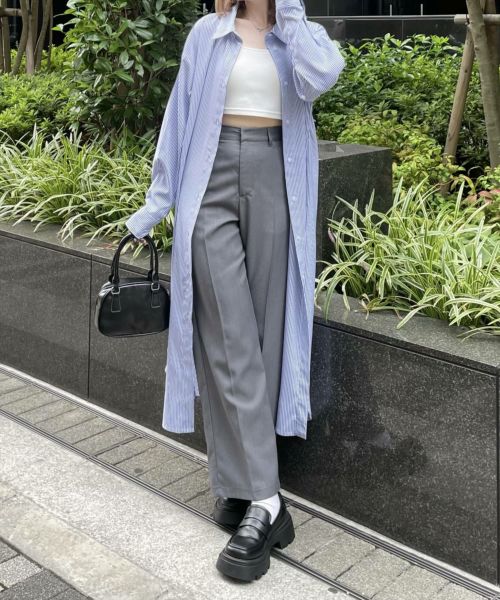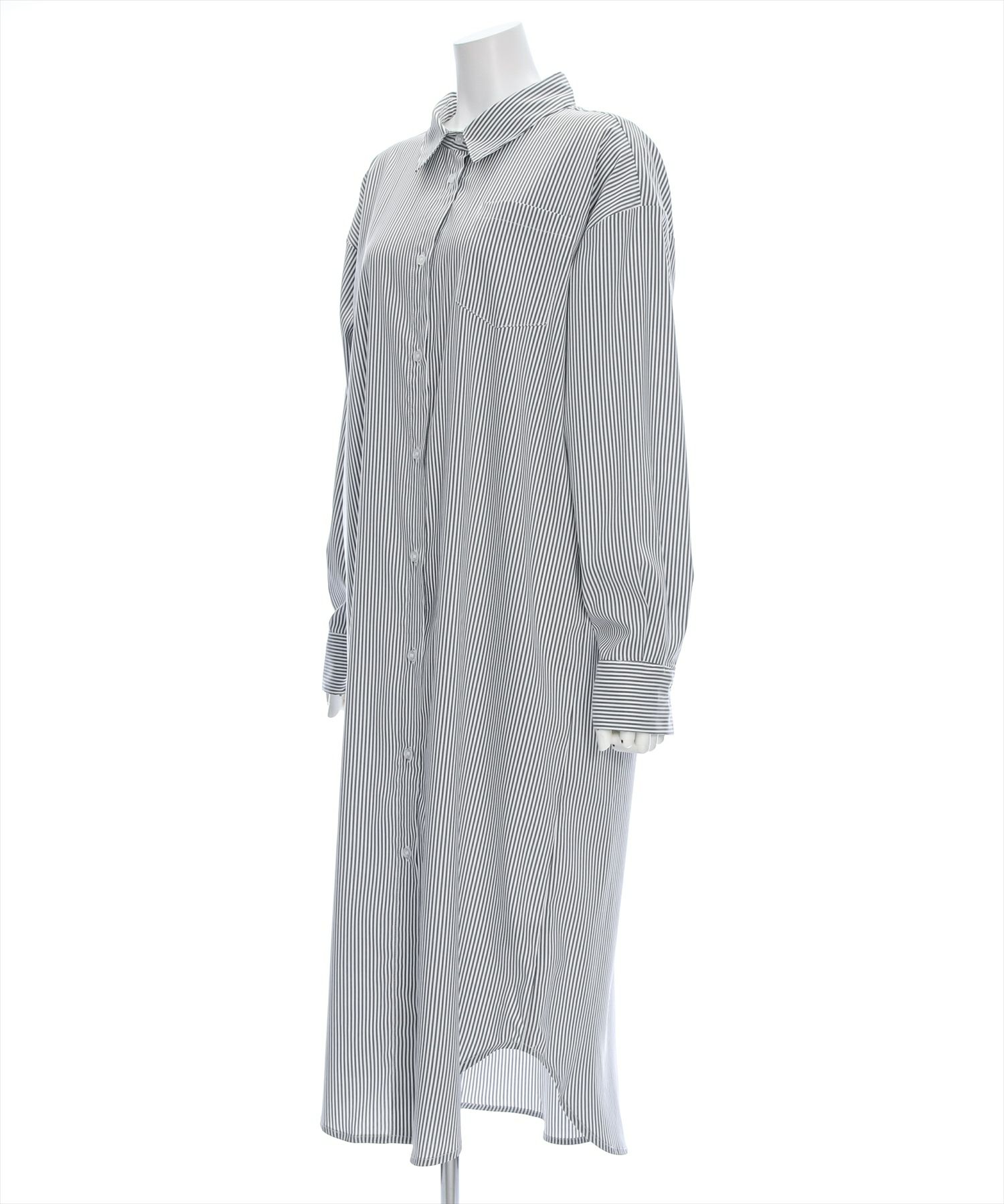 着回し能力のある!ストライプ長袖シャツワンピース【デザイン】ストライプ柄で自然とスタイルアップが叶うワンピースです。さらにロング丈でゆったりとしているので、シルエットを拾いにくくなっています♪様々な着こなし方ができるので、コーデの幅が広がります!【コーディネート】1枚でも、羽織りとしてもご着用いただけます♪ニットベストやデニムパンツ合わせがオススメです◎