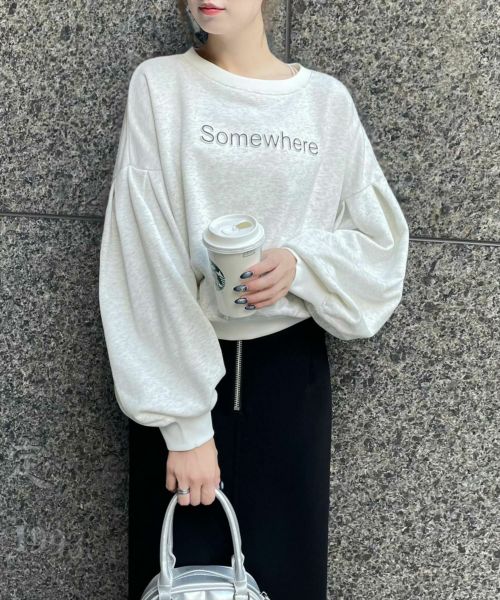 clear ロゴ刺繍袖ボリュームデザインスウェット[CL8791]