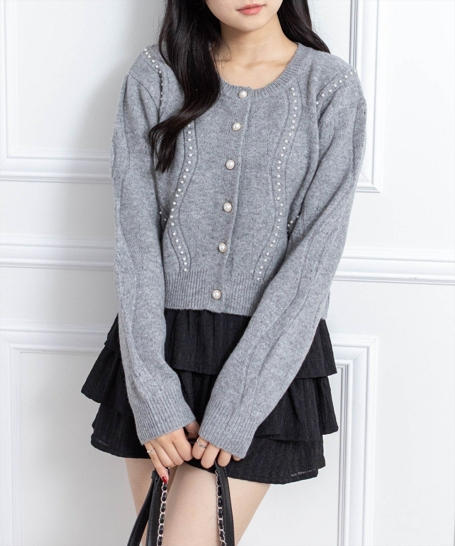 CLEAR BASIC≪WEB先行販売/AW新作≫パールデザイン長袖ニットカーディガン[CL9201]