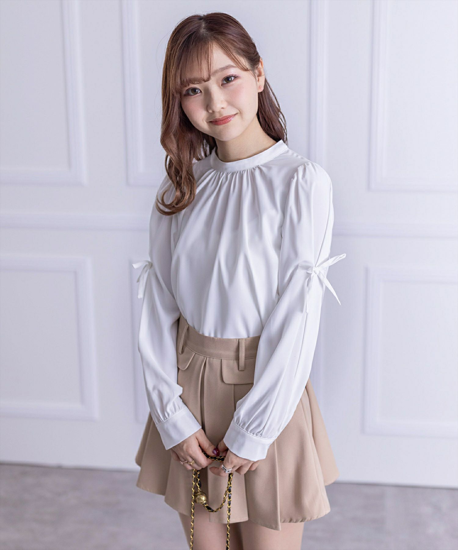 clear 袖リボンパフスリーブ長袖ブラウス[CL8201]