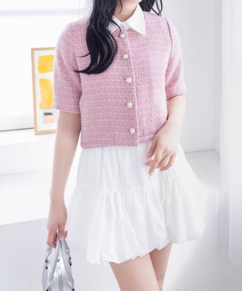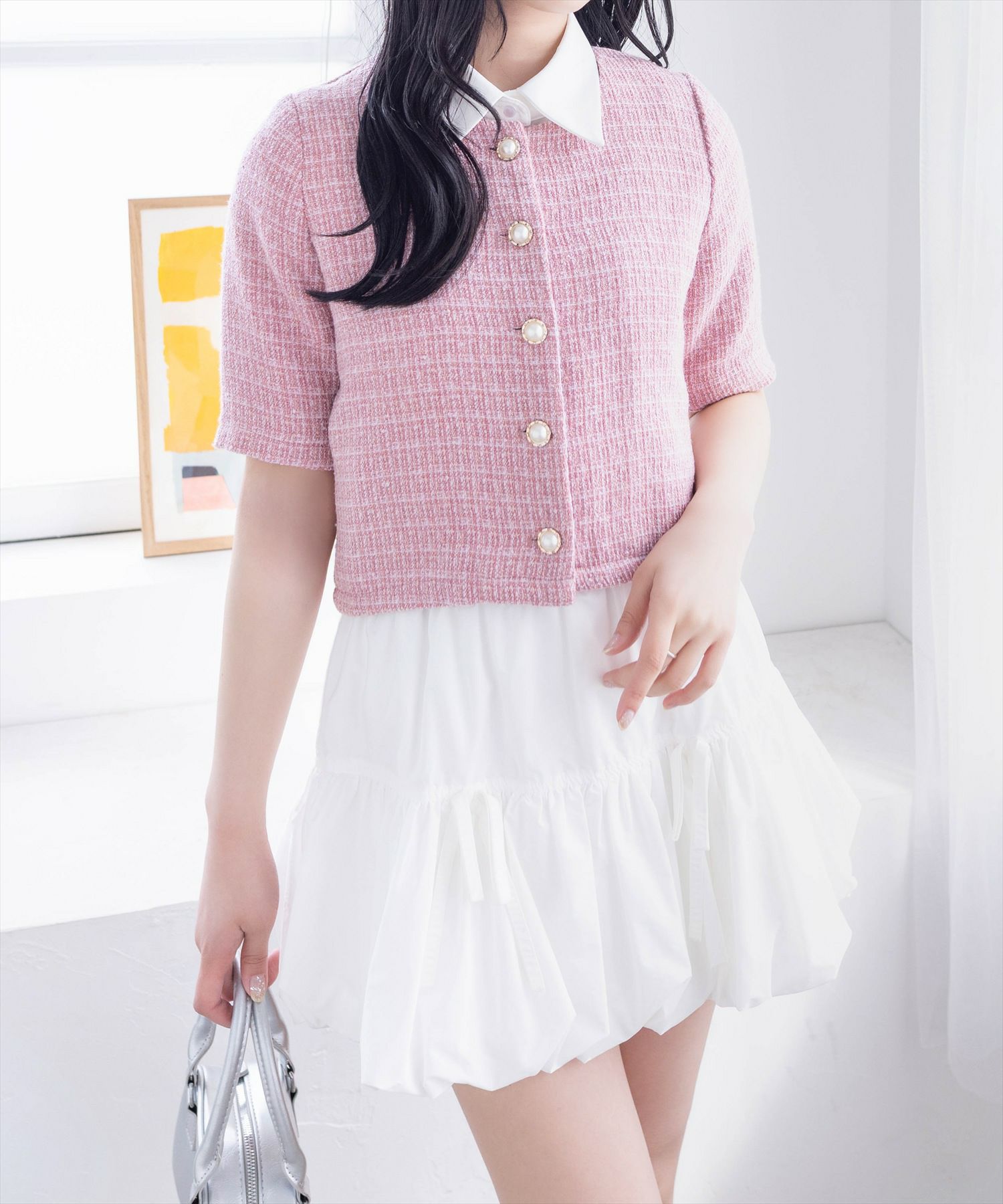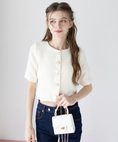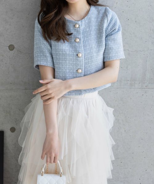 clear 肩スリットチュールリボンニットトップス[CL8851]
