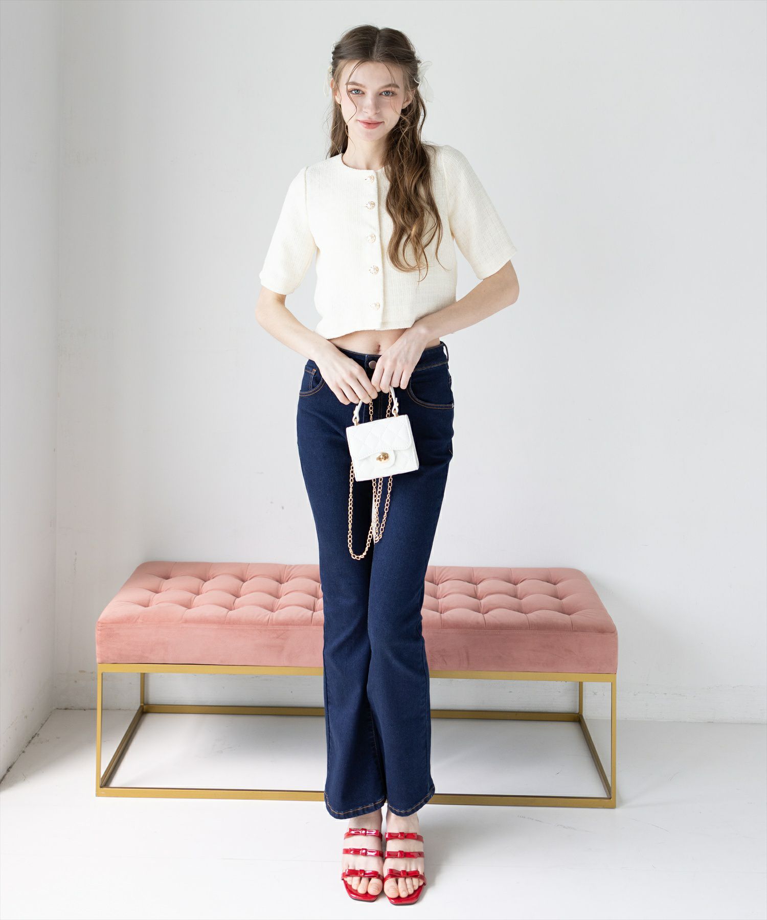 CLEAR BASIC ラメシャギー半袖ニットトップス[CL9223]