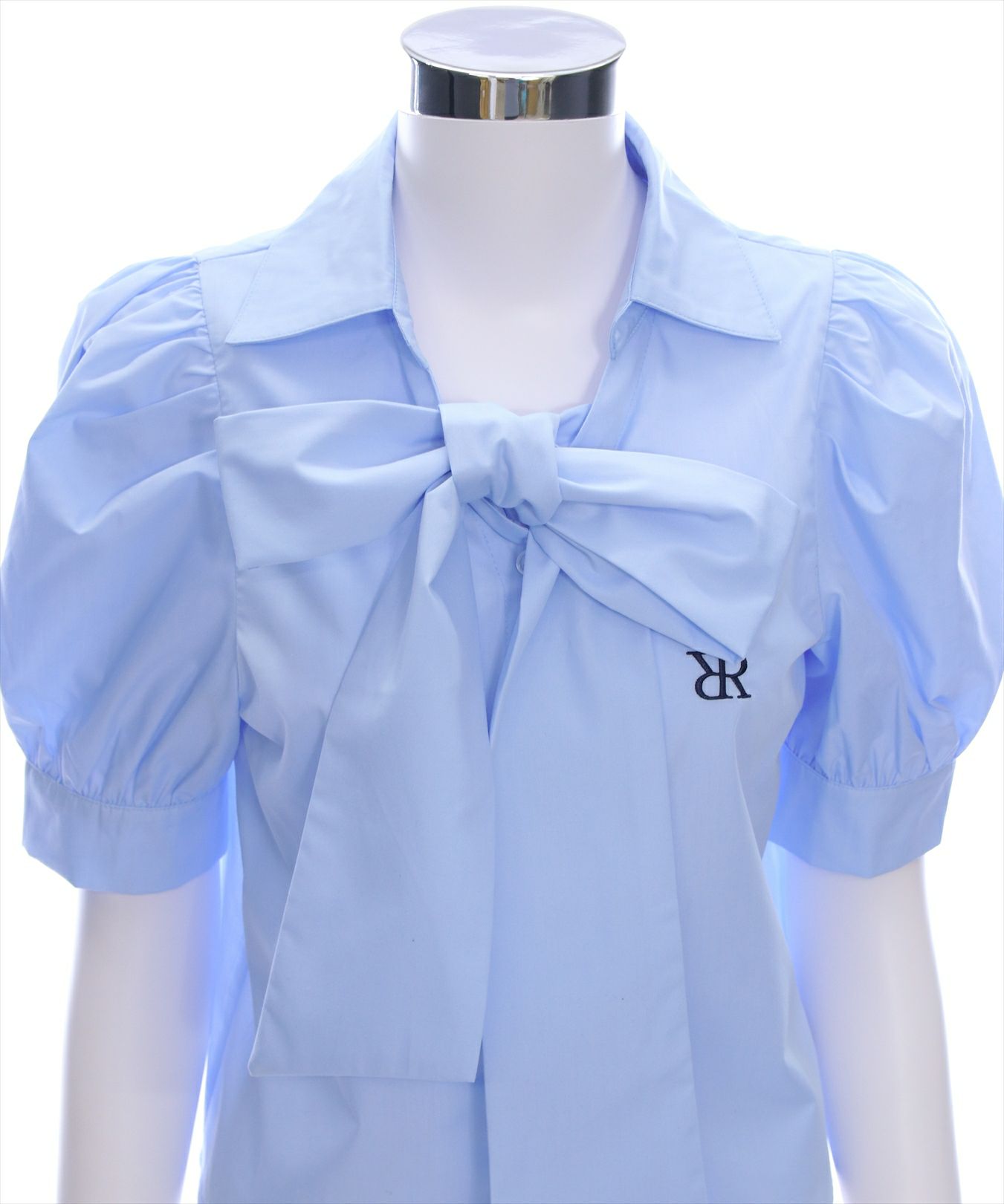 上品で可愛い!ビッグリボンワンポイント刺繍半袖ブラウス【デザイン】ビッグリボンやパフスリーブのデザインから女の子らしい印象が叶うブラウスです。さらに胸元の刺繍がコーデのポイントになります!1枚でも、レイヤードコーデでも着まわせる万能アイテムで、リボンを取り外してもご着用いただけます♪【コーディネート】ミニスカート合わせで甘めガーリーにも、マーメイドスカート合わせで大人フェミニンにもご着用いただけます!ニットベスト合わせもトレンド感がありオススメです◎