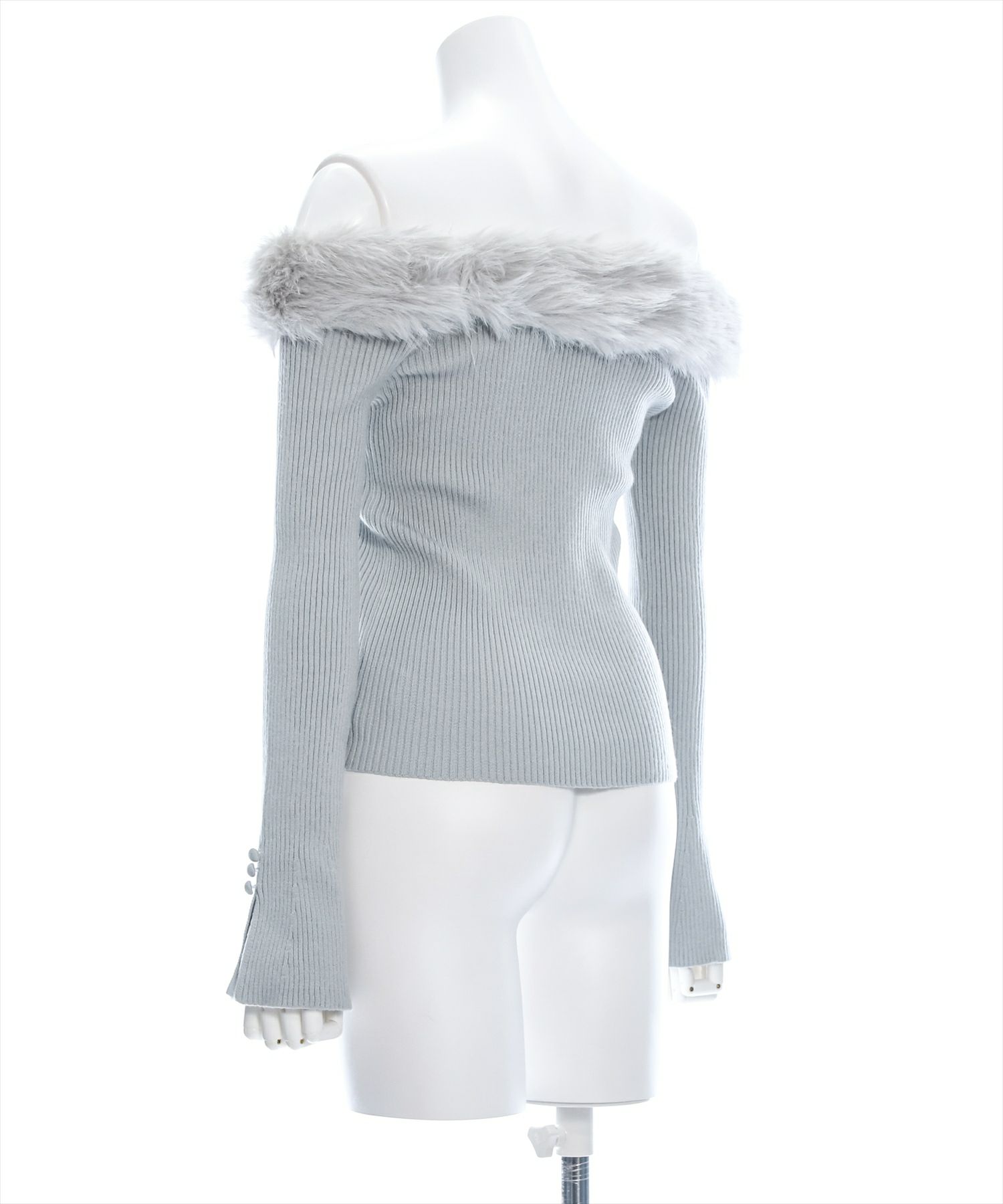 clear 袖スリットファーオフショルニットトップス[CL8430]