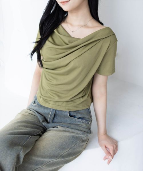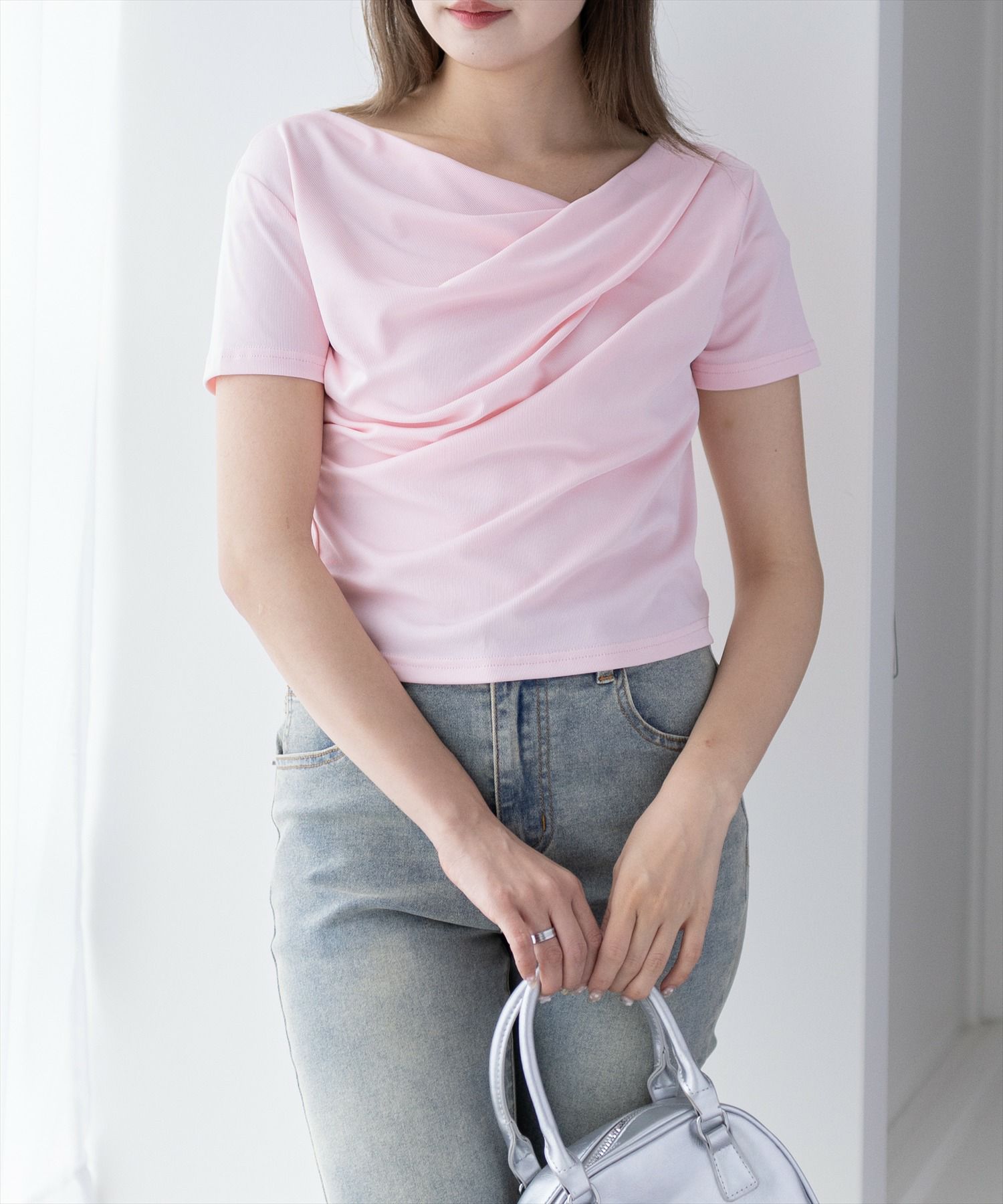 clear ドレープデザイン半袖カットソートップス[CL9250]