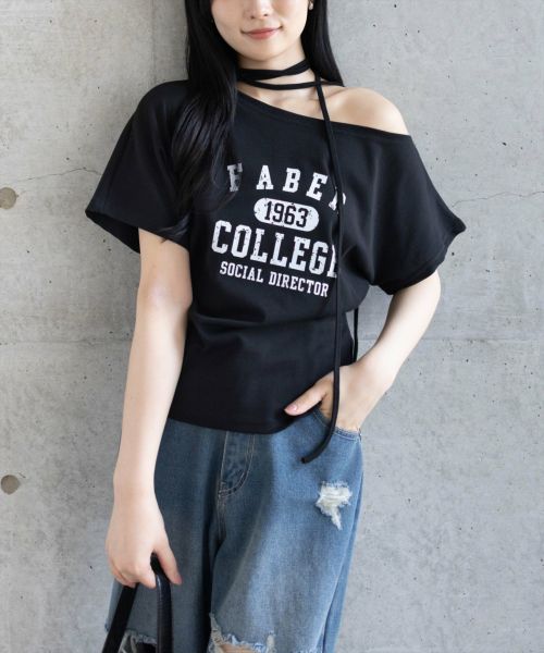 clear チョーカー付きワンショルロゴTシャツ[CL9347]