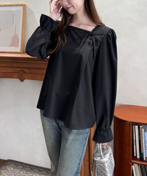 clear スクエアネックサイドボタンリボン付きブラウス[CL8660]