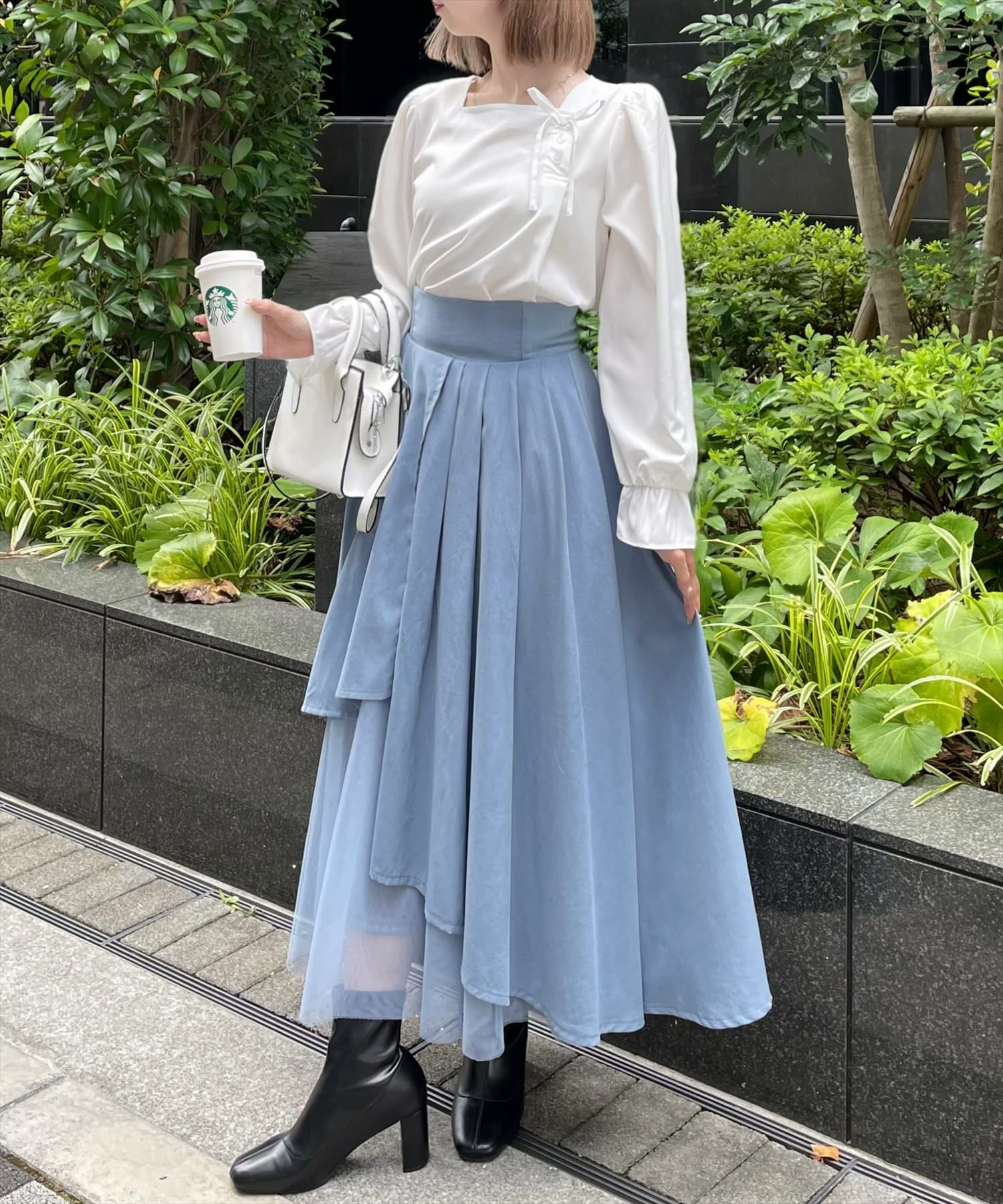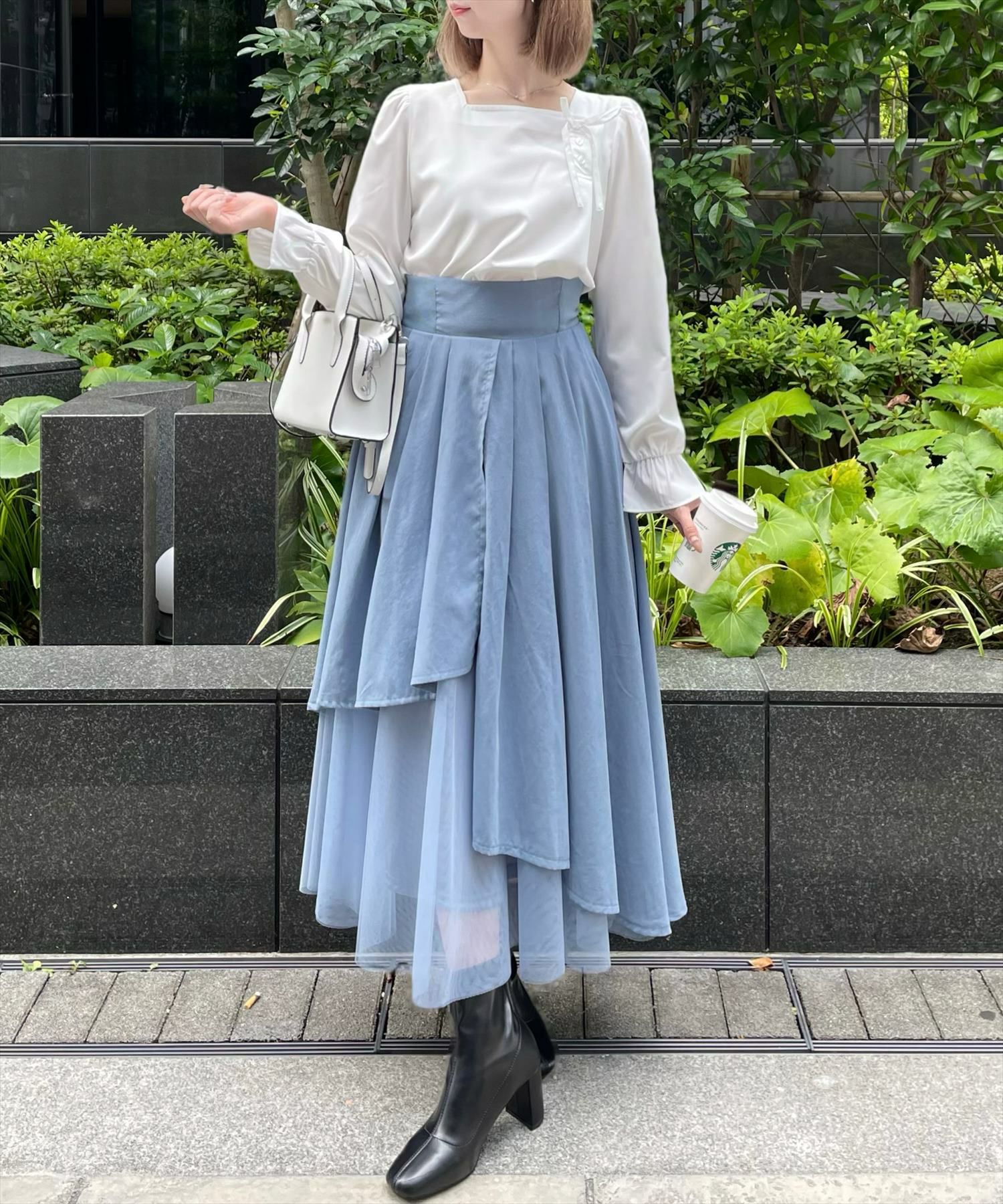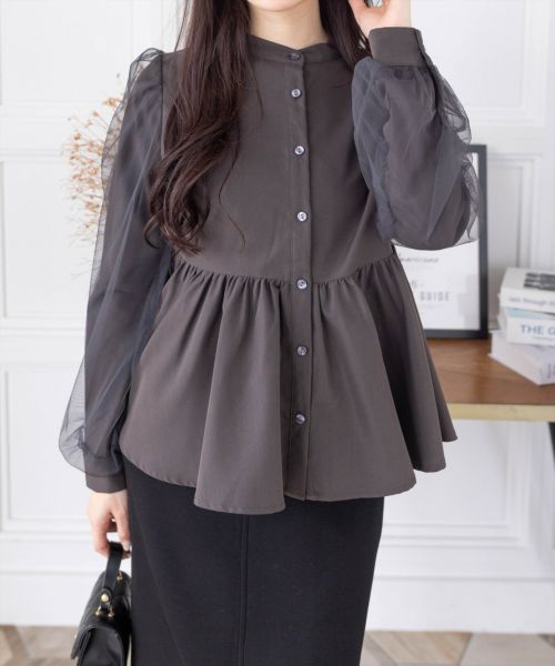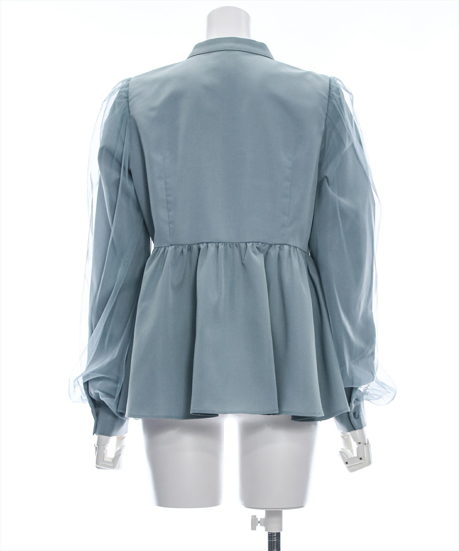 clear 長袖チュールドッキングペプラムブラウス[CL8756]