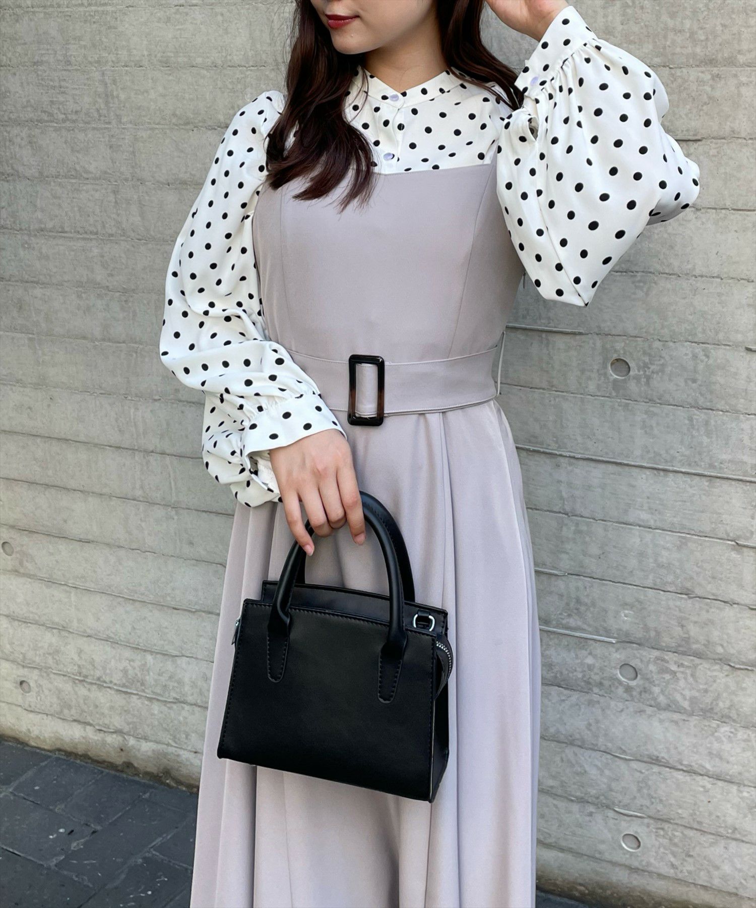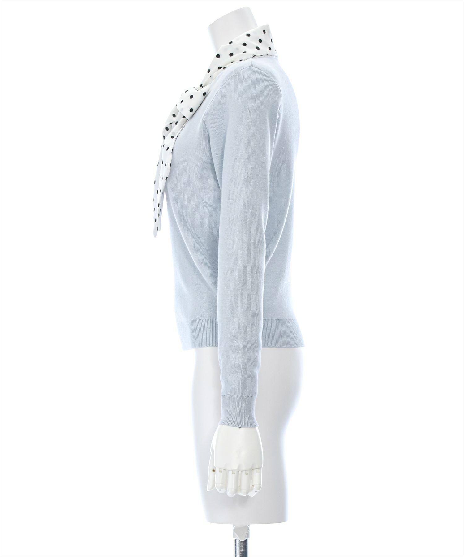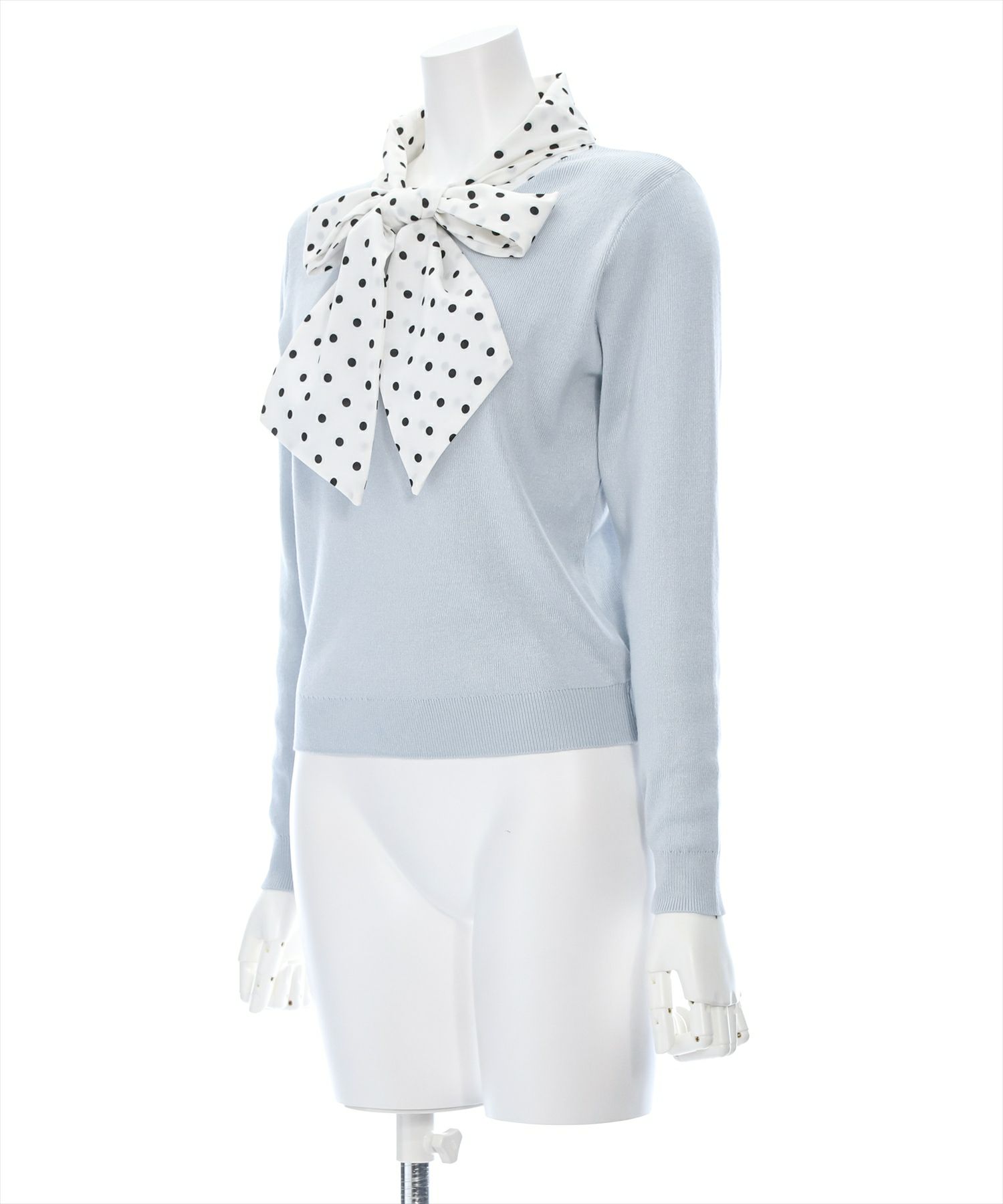 clear ボウタイドットリボンドッキングニットトップス[CL8564]