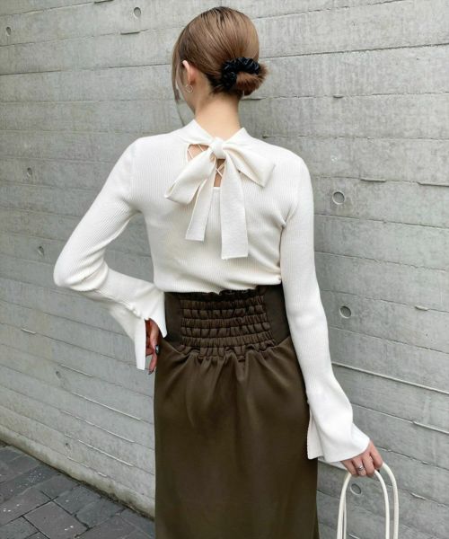 clear バックリボンフレアスリーブニットトップス[CL8383]