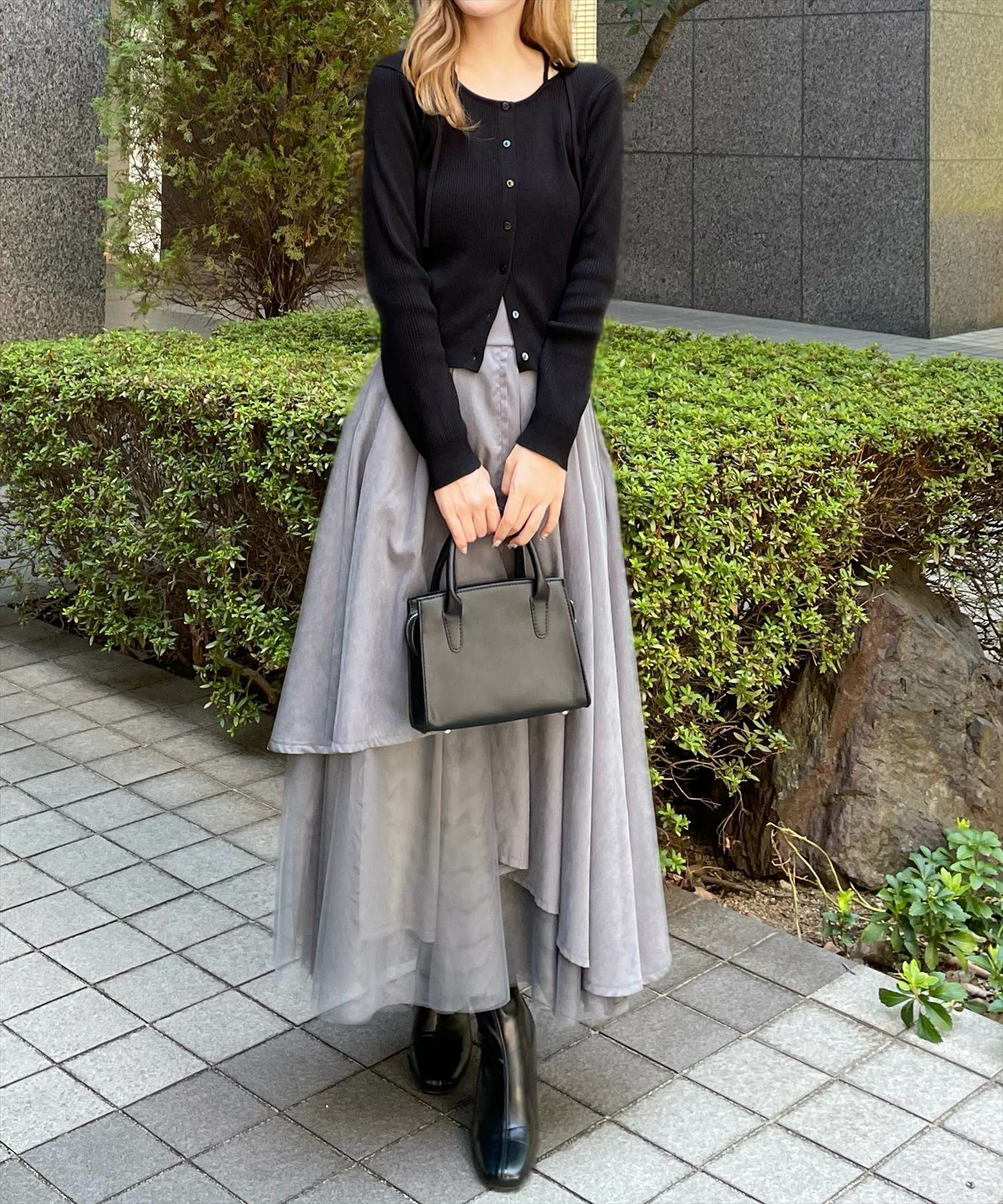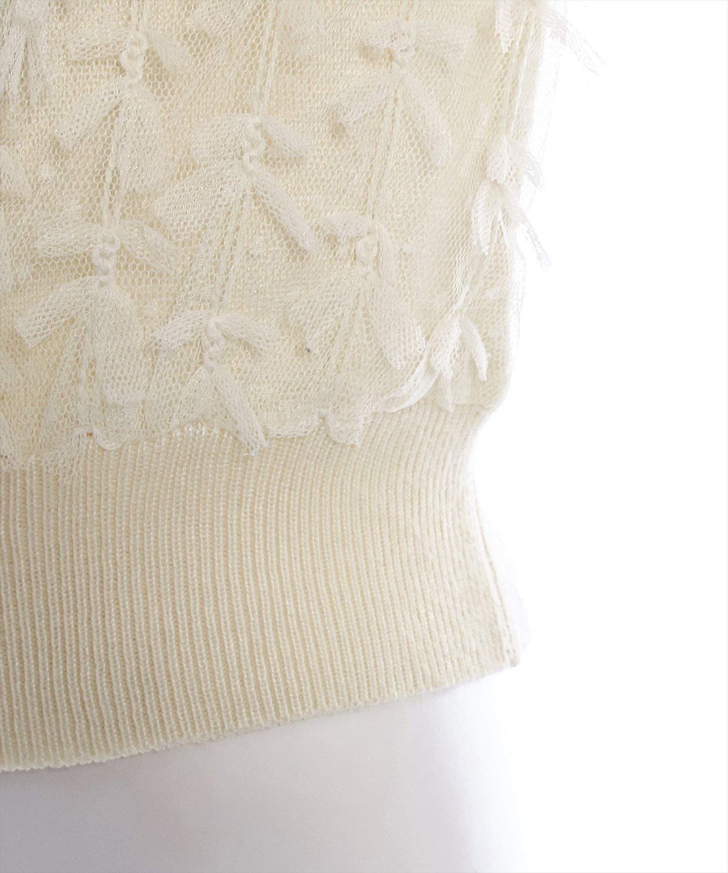 clear リボンチュールドッキングニットカーディガン[CL8643]