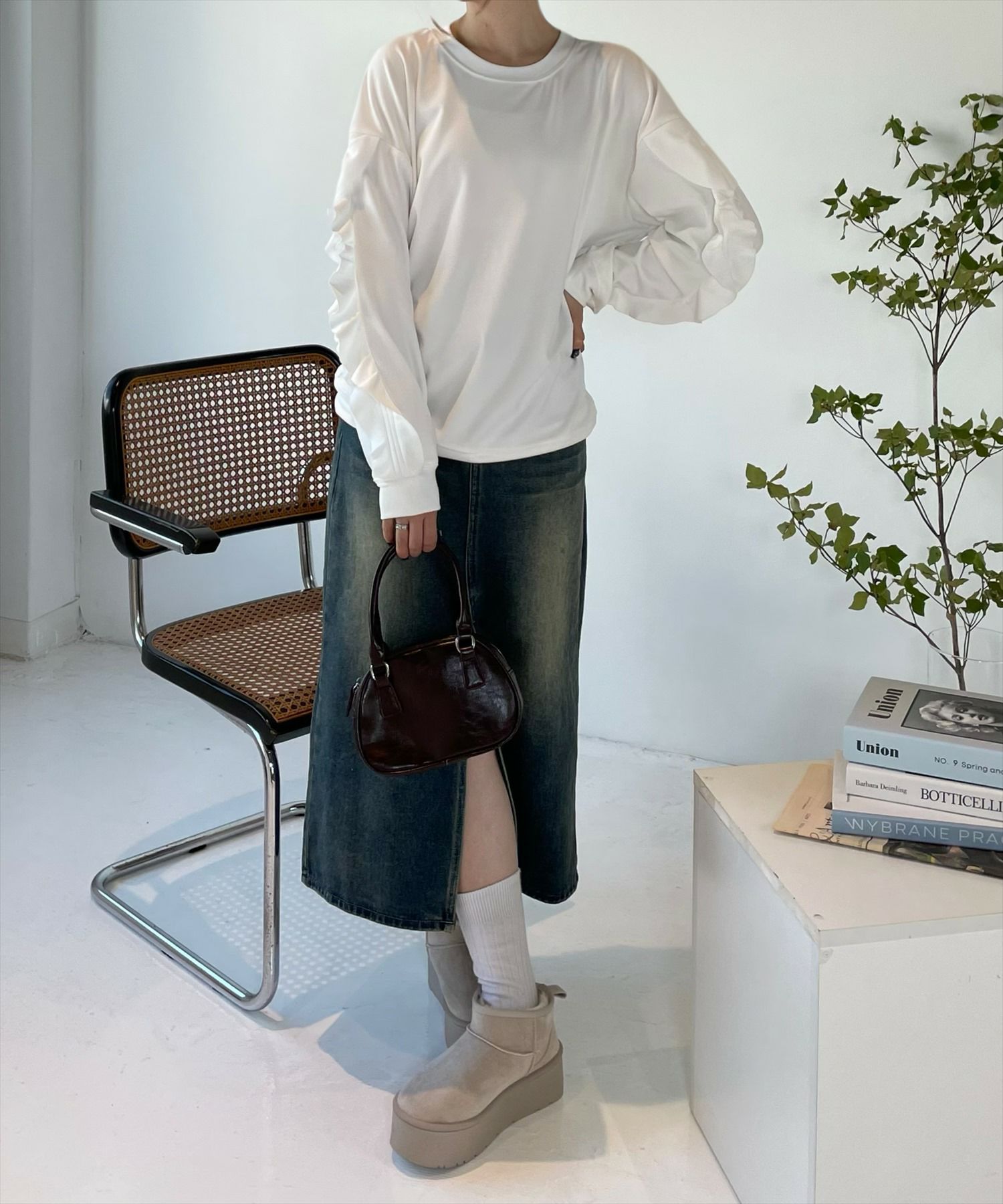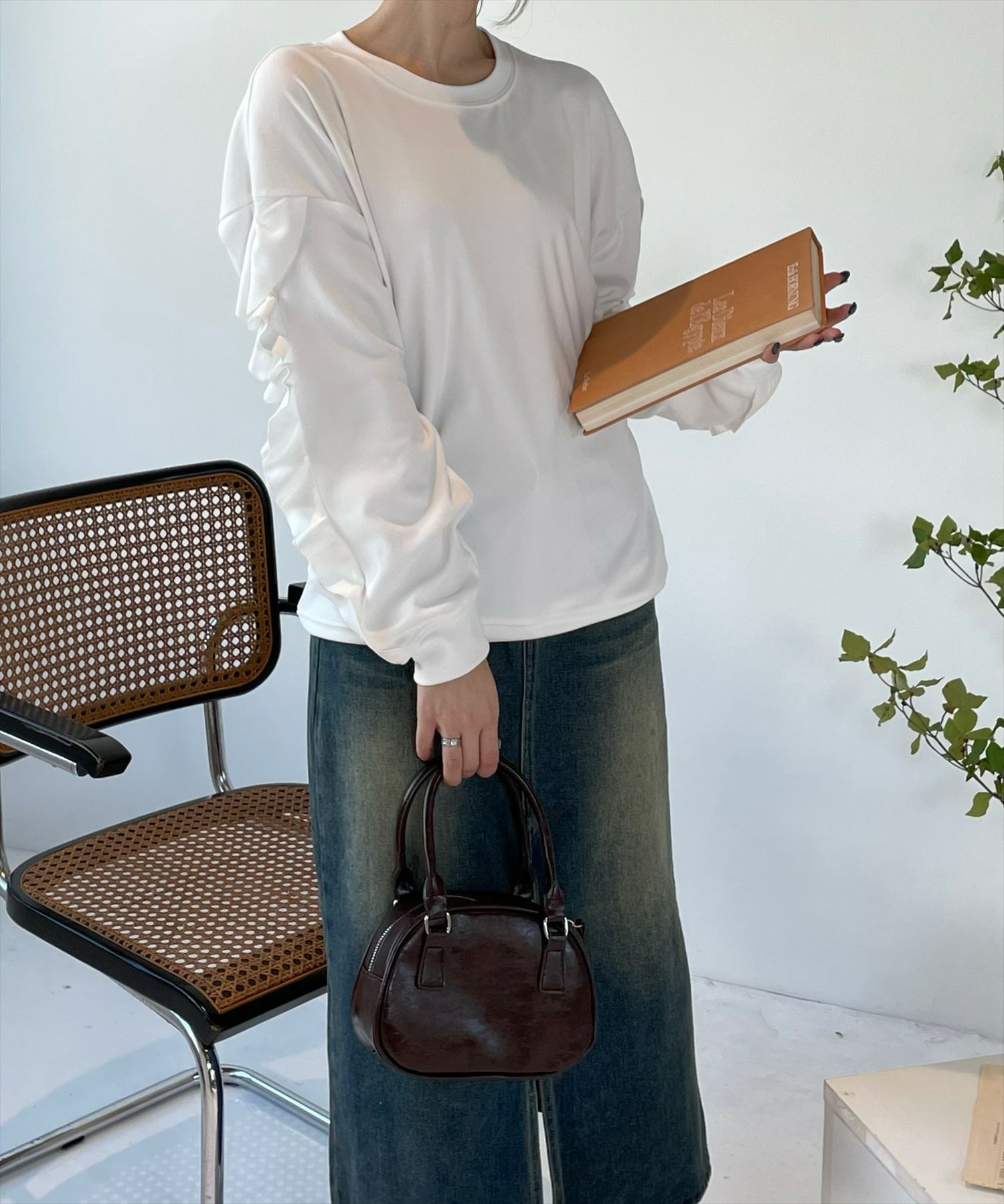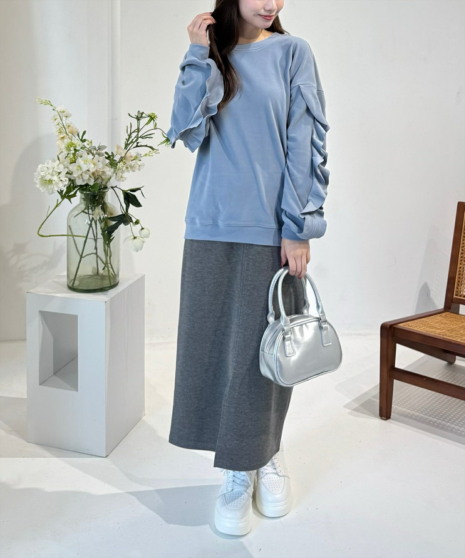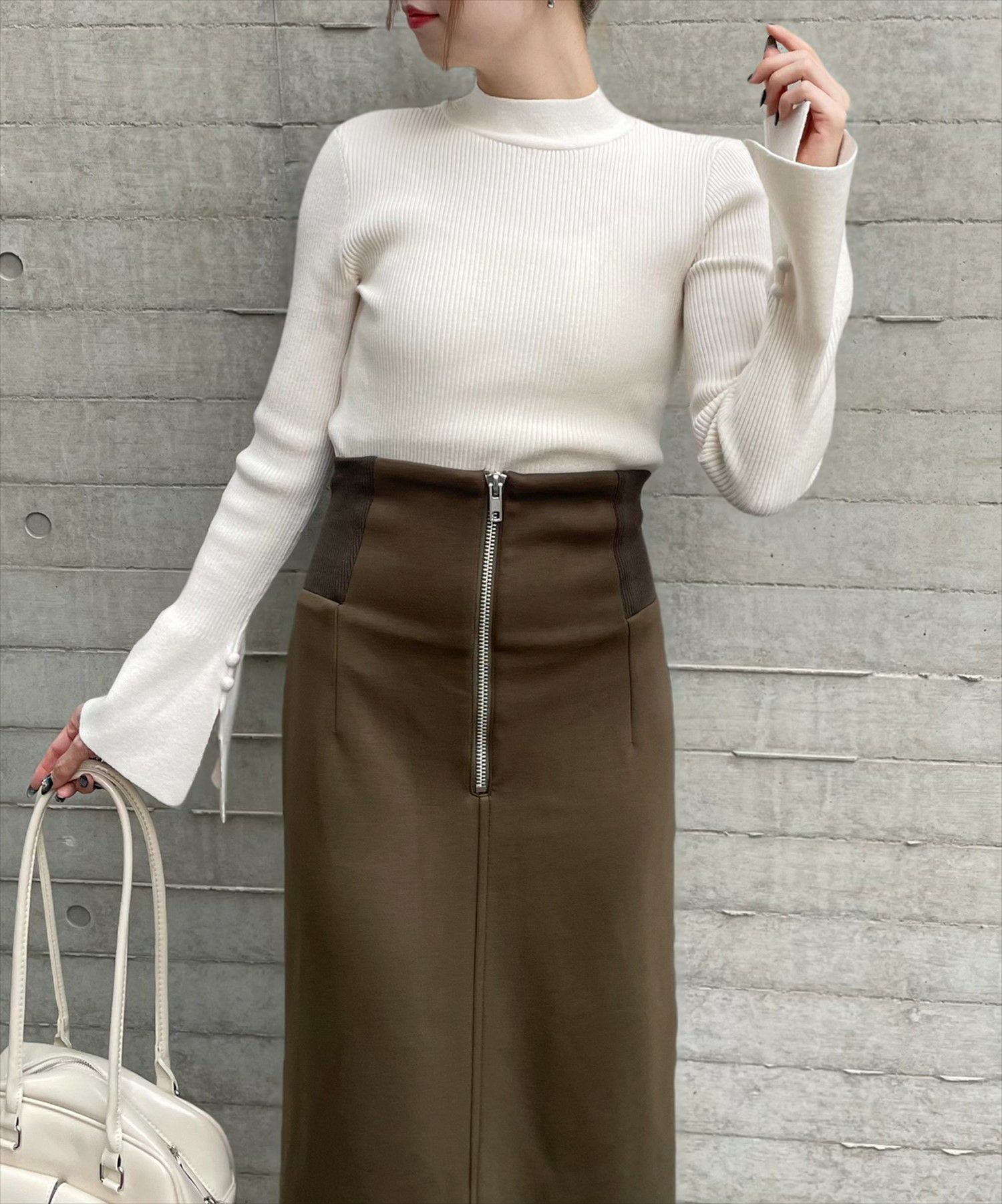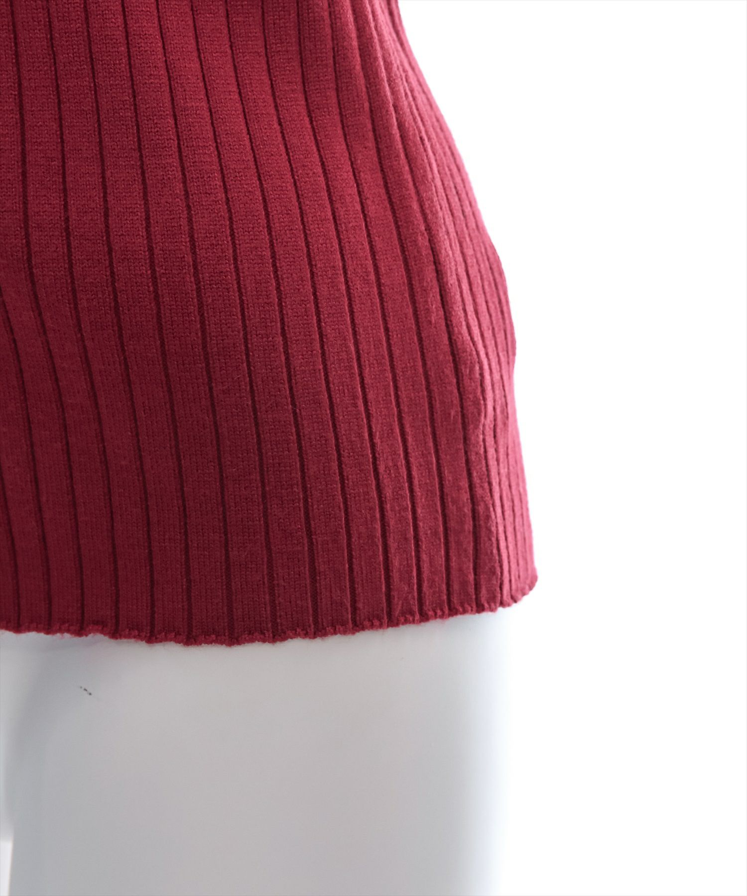 clear サイドドロスト長袖リブニットトップス[CL8872]